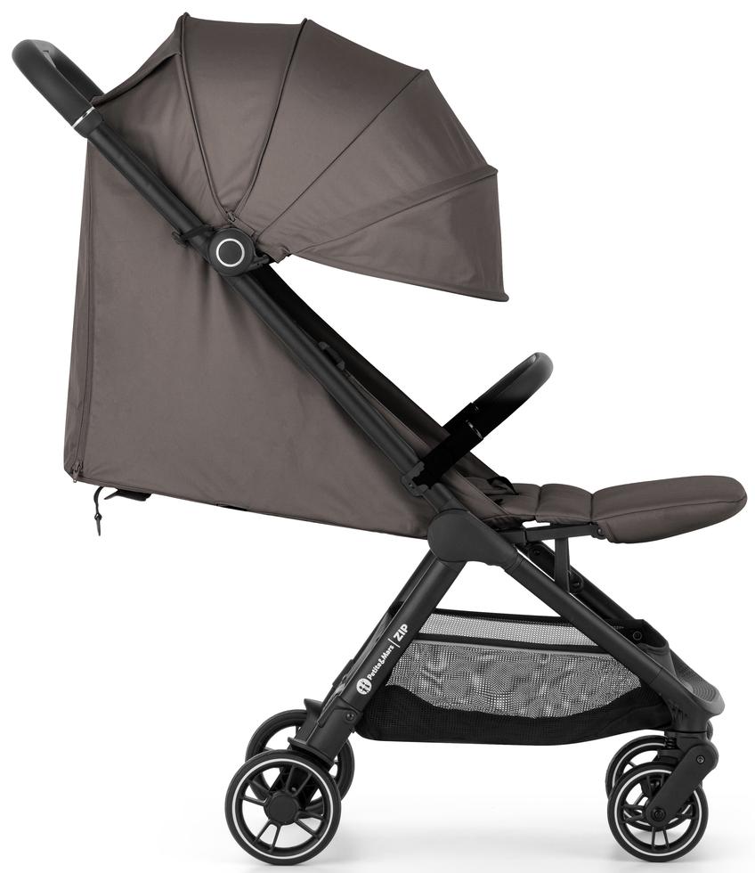 Ľahký cestovný kočík Petite&Mars Zip vyniká svojou kompaktnosťou, nízkou hmotnosťou a jednoduchým skladaním jednou rukou. Je navrhnutý pre rodičov, ktorí často cestujú – či už lietadlom, autom alebo mestskou dopravou. Po zložení má rozmery kabínovej batožiny, napriek tomu ponúka priestranné sedenie s plnohodnotným ľahom, odpružené penové kolesá a dlhú striešku.