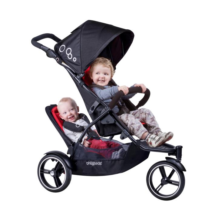 Druhé, prídavné sedadlo sa dá pripojiť dopredu nad hlavné sedadlo v prípade ležiaceho mladšieho súrodenca, alebo dozadu za nákupný košík v prípade, že súrodenec v hlavnom sedadle už sedí. Okrem toho ho možno využiť aj v jednomiestnej konfigurácii v protismere v prípade, že chceš mať dieťatko tvárou k sebe. Prídavné sedadlo nemá striešku a dá sa polohovať len čiastočne, je preto vhodné pre samostatne sediace deti. Pri kúpe kočíka je double kit s druhým sedadlom v cene automaticky.