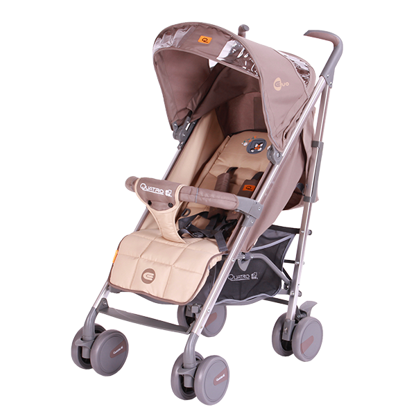Quatro Evo 8-wheels je pôvodná verzia mestského golfového kočíka s plnou funkcionalitou, ku ktorej sa v roku 2018 pridal aj rovnaký model s prednými nezdvojenými kolieskami Evo 2018. Sedadlo je dostatočne priestranné aj pre staršie dieťa. Vďaka polohovaniu do ľahu ho však využiješ aj pre tie menšie. Výhodou kočíka je aj predĺžiteľná strieška so šiltom a pláštenka s nánožníkom vo výbave. Staršie verzie spoznáš podľa plastového výklopného šiltu, ktorý v roku 2017 nahradil plný väčší látkový.