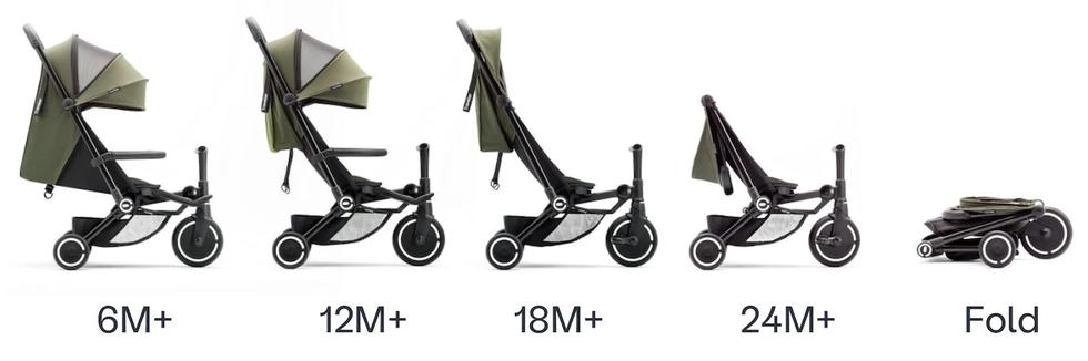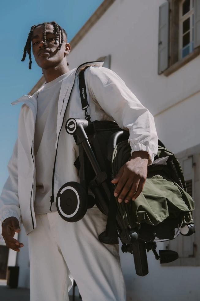 - jednoduché skladanie „na plocho“ a kompaktné rozmery po zložení – kočík sa zmestí aj do malého kufra auta a zodpovedá rozmerom príručnej batožiny do lietadla (odporúčame overiť u konkrétnej leteckej spoločnosti),