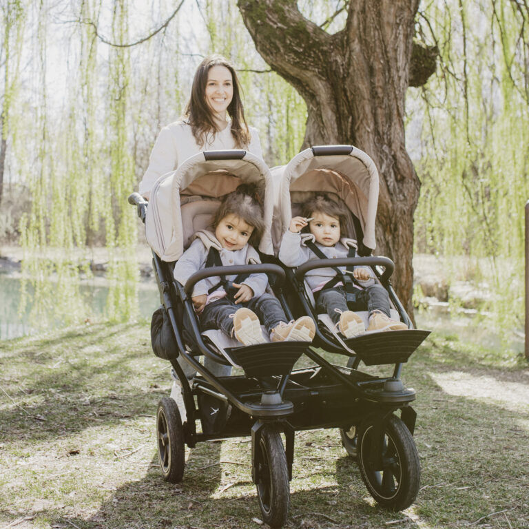 TFK Duo2 je robustný a flexibilný kočík určený pre súrodencov alebo dvojičky, ktorý rastie spolu s deťmi a ponúka vysoký komfort a variabilitu aj v náročnejšej prevádzke. Vyniká jednak možnosťou voľby materiálu kolies (nafukovacie alebo so vzduchovými komorami), ďalej kombinovanou vaničkou Combi Unit, ktorú možno polohovaním premeniť na športové sedadlo pre menšie deti a voliteľne pridať aj stupienok pre väčšie pohodlie a využitie maxima priestoru. Tento kočík však ponúka aj samostatnú sedaciu jednotku Seat Unit, ktorá je plnohodnotným sedadlom určeným pre sediace dieťa od 6 mesiacov.