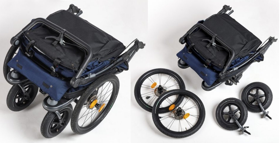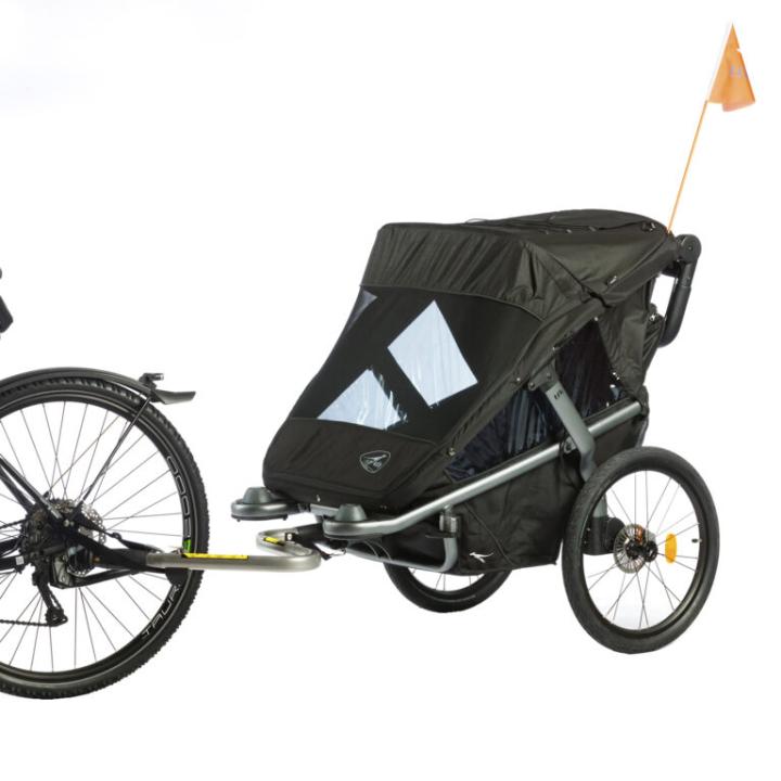 - jednoduchá premena z kočíka na cyklovozík pomocou priloženej ťažnej tyče, vhodný aj pre elektrobicykle (do 25 km/h),