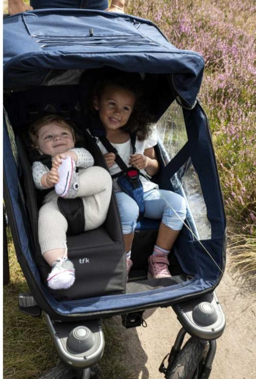Kočík TFK Velo 2 je všestranný športový kočík, ktorý možno jednoducho premeniť na pohodlný cyklovozík. Využijete ho pre jedno alebo dve deti. Do kočíka je možné vložiť novorodeneckú vložku.