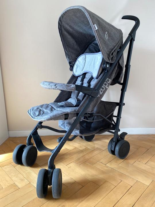 Golfový kočík je pevný a stabilný, ľahko sa skladá, je priestranný a teda má dosť miesta aj pre väčšie dieťa. Poloha chrbta sa dá nastaviť do ľahu.