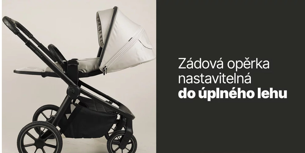 - operadlo chrbta polohovateľné do úplného ľahu (180°), dostatočne dlhé aj pre vyššie dieťa (50 cm),