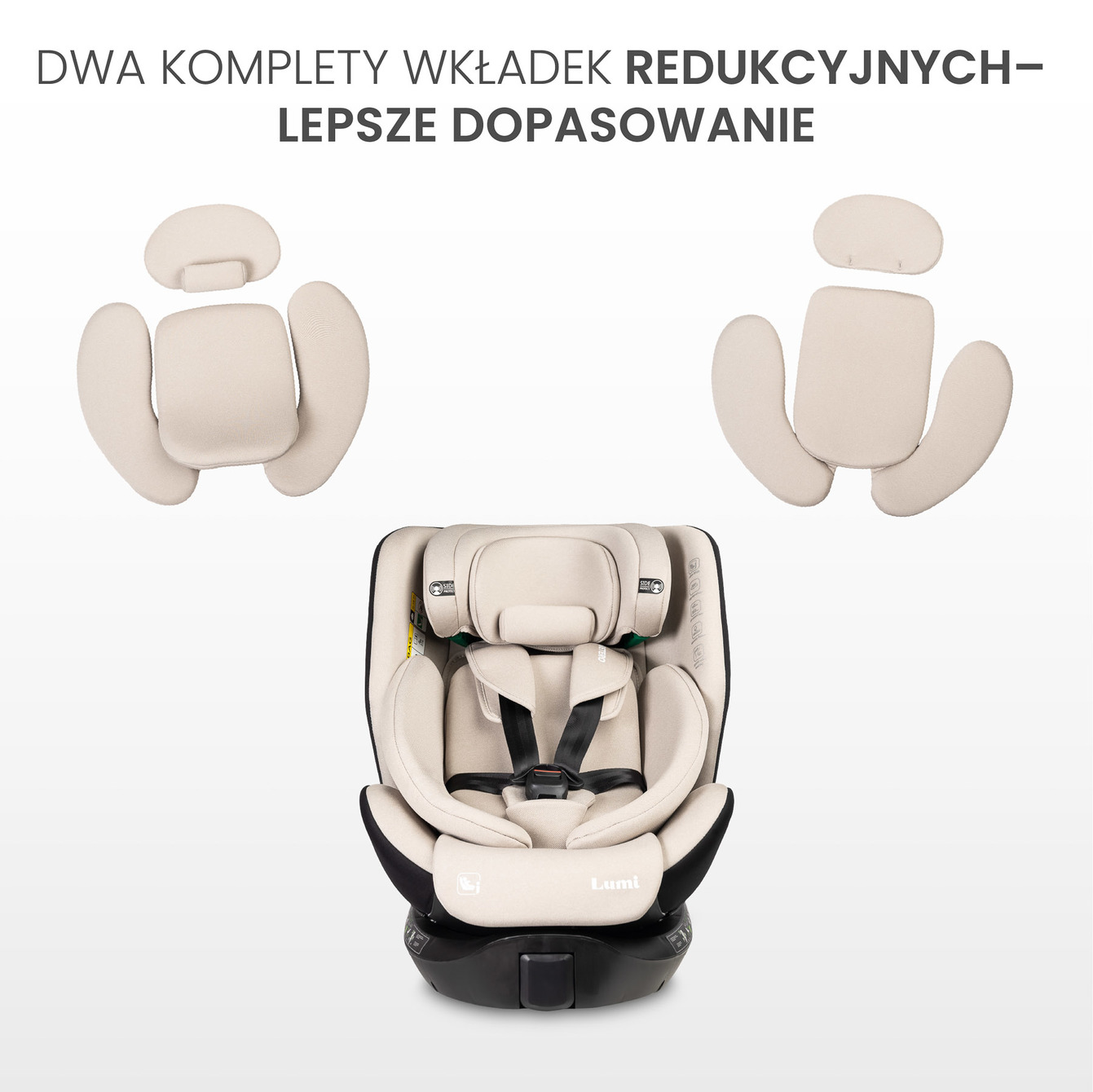 Možnosť výberu vhodnej redukčnej vložky zabezpečuje ideálne prispôsobenie sedačky výške dieťaťa. Vložky sú vyrobené z mäkkej, pružnej peny a poskytujú stabilnú a pohodlnú oporu telu dieťaťa, čím zvyšujú komfort počas cestovania.
