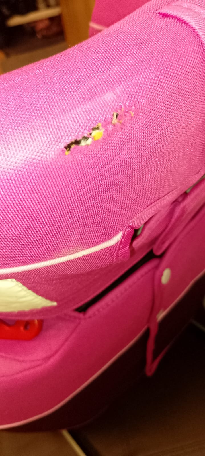 Poťah na opierke je na jednom mieste vydratý je to vidieť na fotke.