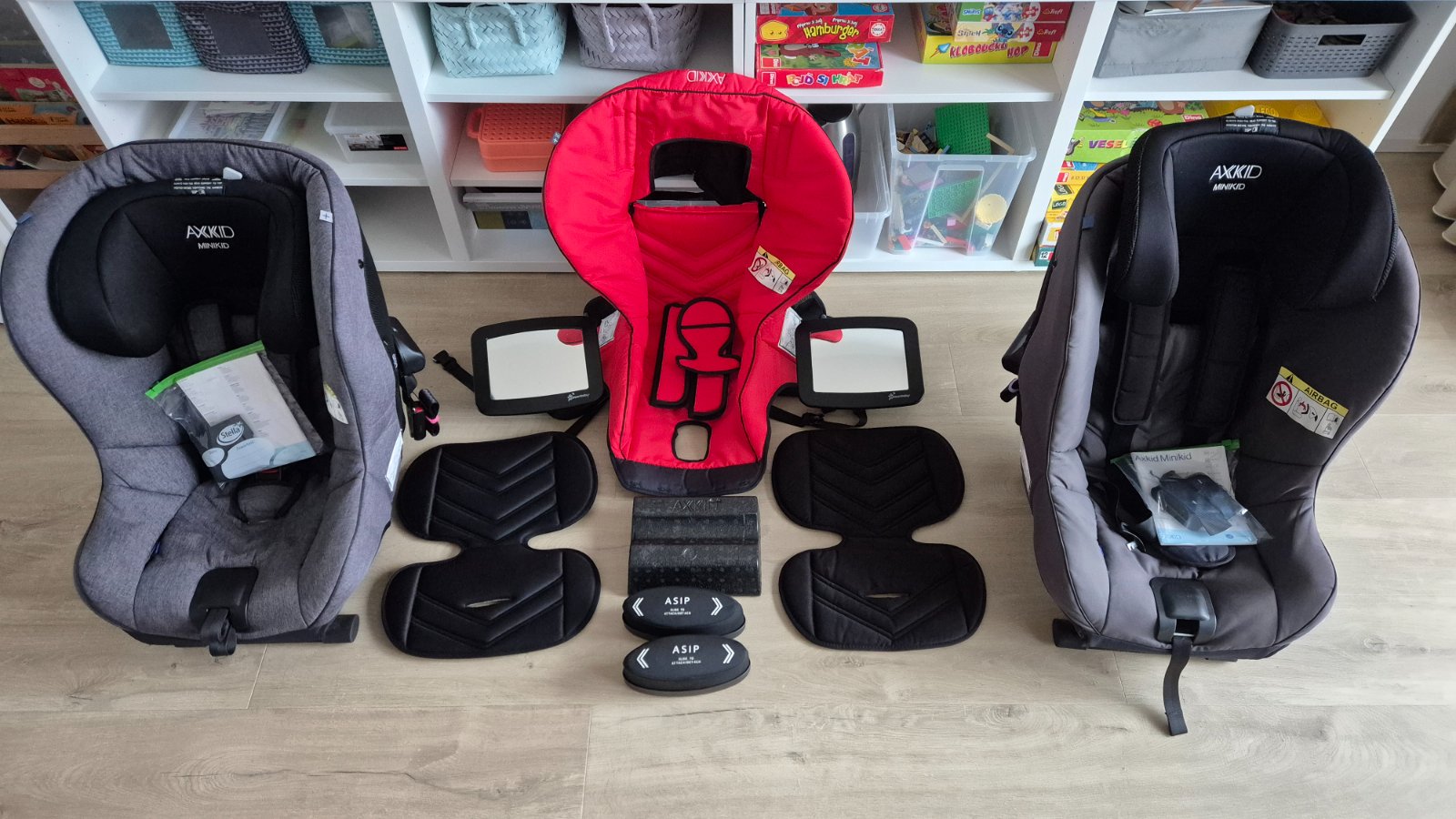 Predam dve autosedacky Axkid Minikid 2 premium (protismerne) vo velmi dobrom stave, pouzivane jednym dietatom v dvoch autach od 2022 do 2025. Neboli sucastou ziadnej nehody a su bez poskodenia. K sedackam je aj bocna ochrana proti narazu, oka na uchytenie o kolajnice prednej sedacky v pripade potreby, jeden klin na lepsie nastavenie sklonu, zrkadla na hlavove opierky zadnych sedadiel. Obe sedacky su v sivej farbe a predavam to s jednym nahradnym oblecenim cervenej farby - nepouzity. Vsetko je vycistene a oprate, pripravene na pouzivanie.