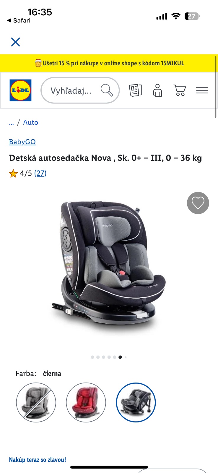 Posunieme čiernu Detská autosedačka Baby Go Nova 0 – 36 kg, ešte v záruke po synovi. Kupovaná v Lidli, mám doklad a odovzdám, platí do februára 26.