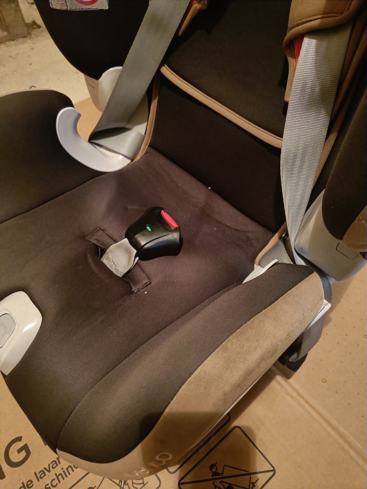 Autosedačka je plne funkčná, len ten poťah je trošku fľakatý... má 5 bodové bezpečnostné pásy a možnosť naklopenia autosedačky.