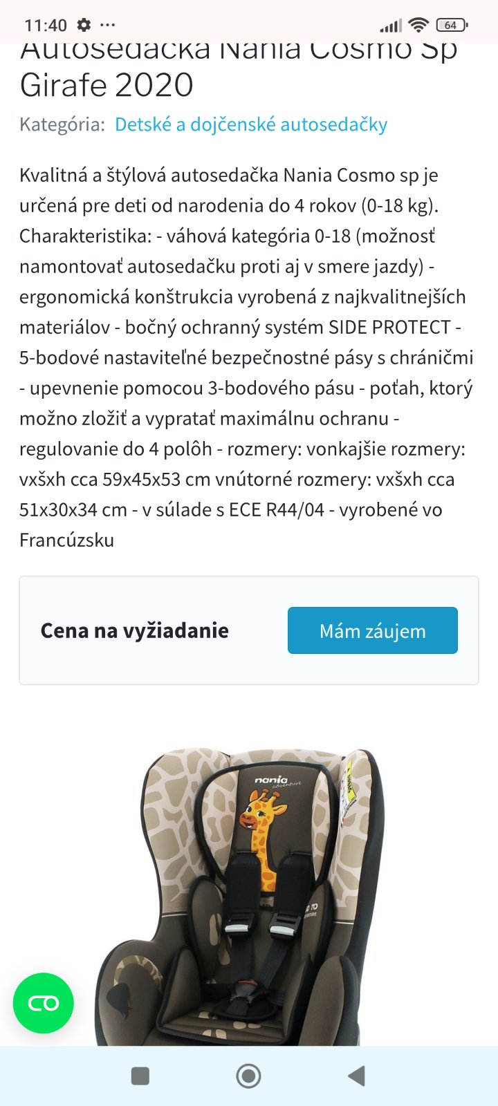 Predám zachovalú autosedačku NANIA od 0-18kg