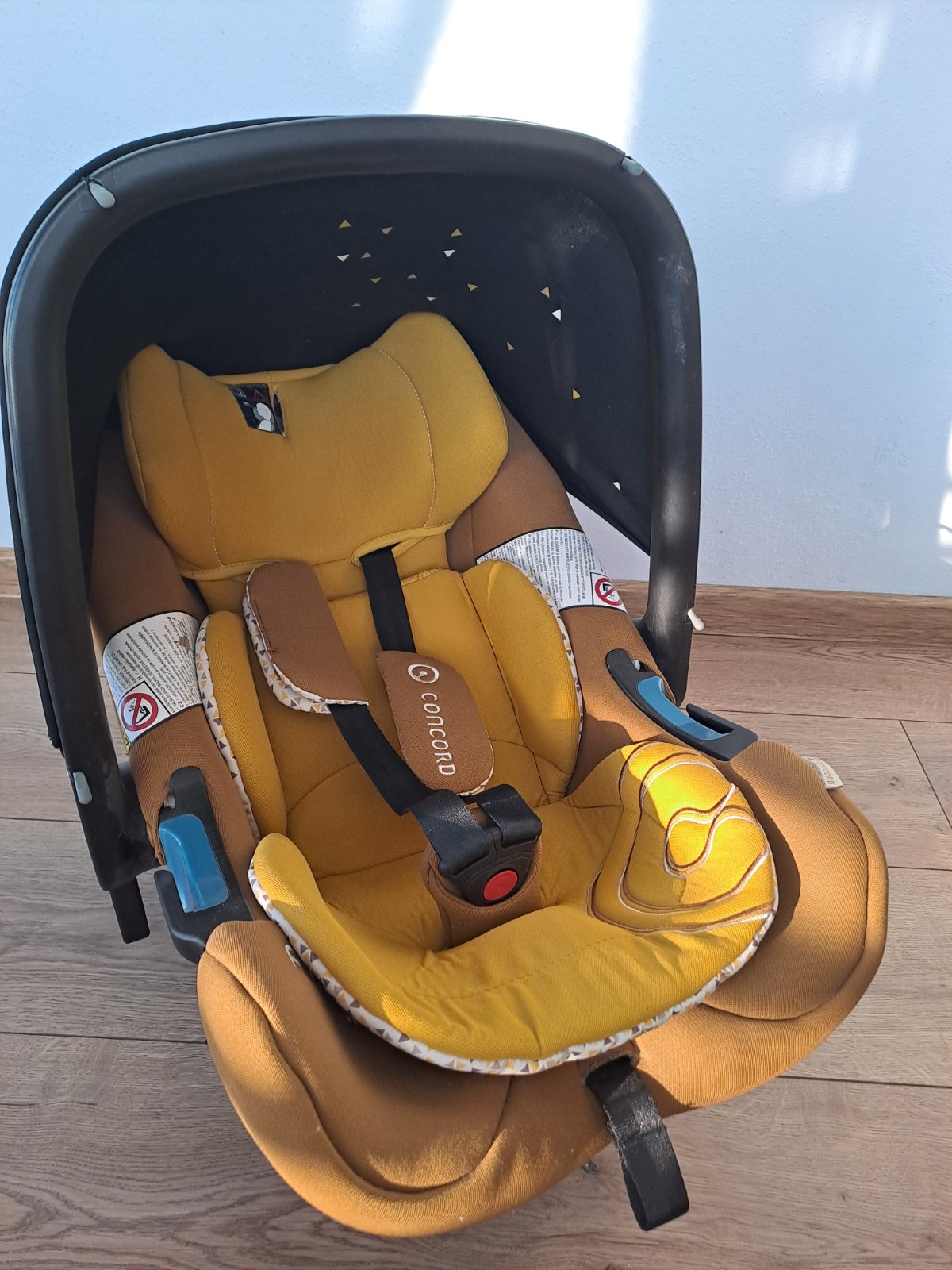 Vajíčko v top stave, po jednom dieťati. Strieška sa dá ľahko zapnúť/ odopnut, je k nemu aj vrecko kde sa prakticky odložiť a je stálou súčasťou. Zapína sa v protismere jazdy, kompatibilné s konštrukciou kočíka concord fusion, offroad. K vajíčku mam prebalovaciu tašku v rovnakej farbe/značky. Tašku pridám k vajíčku. Osobný odber SC/ prip.BA po dohode
