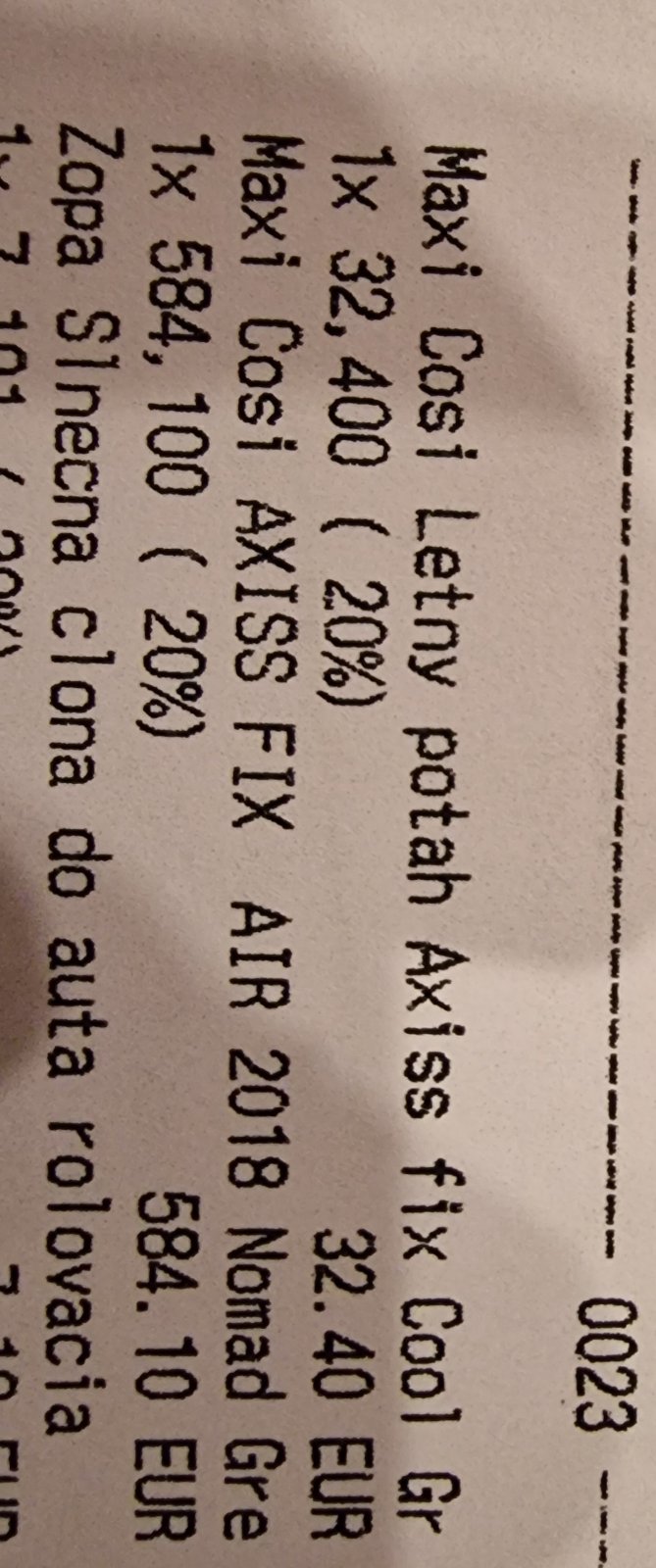 Cena novej bola (vid foto): 584 Eur