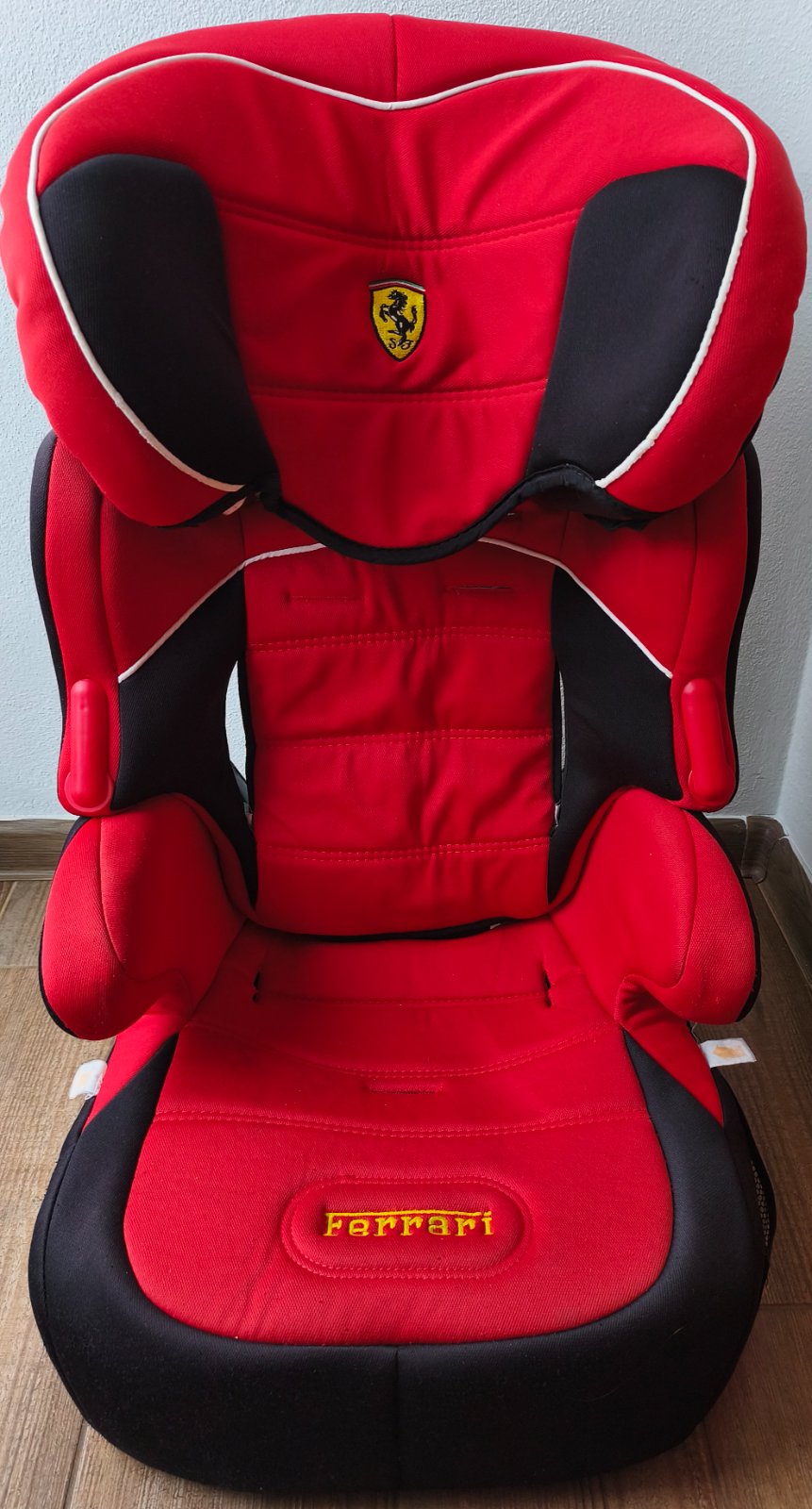 Autosedačka Ferrari 15-36 kg používaná . Nastaviteľná opierka hlavy podľa výšky dieťaťa. Pripevňuje sa v aute pásom. Spodná časť sa dá neskôr používať ako podsedák. Možný osobný odber TO, NR. Veľkosť zásielky 75 x 50 x 50 cm.