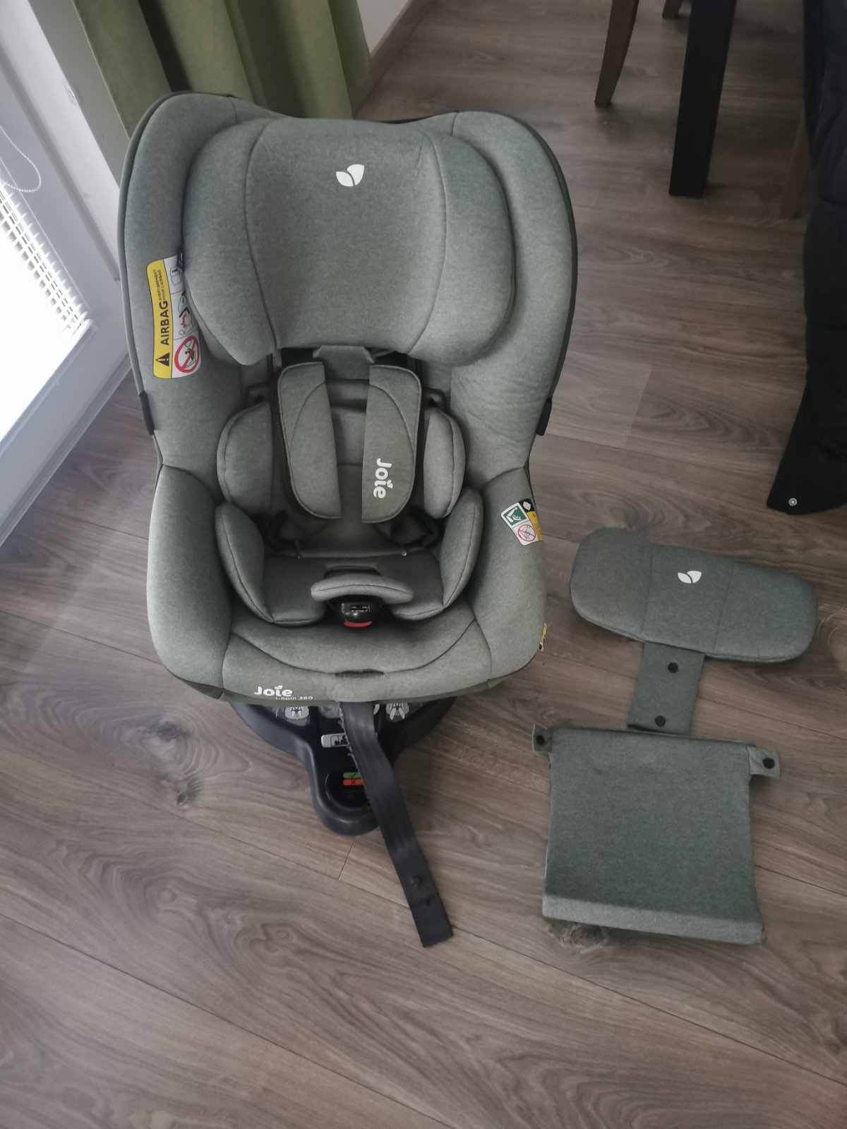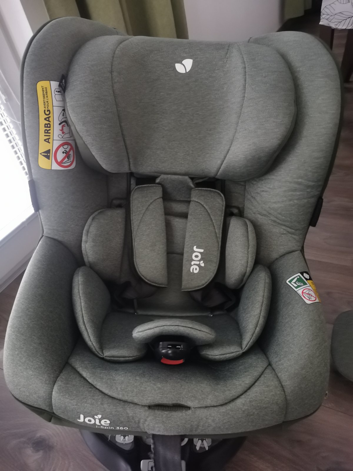 Predáme našu Joie i spin 360. Otočná kvalitná sedačka je po 1 dieťati, syn ju mal ako prvú sedačku po vajíčku do 4 rokov, nefajčiarska domácnosť, nebola búraná, poťah je bez fľakov, veľmi pekný stav, jediné 2 chyby viď na fotke, kúsok pásu ktorým sa zaťahujú pásy je nastrapkaný, nejedná sa o celý pás, len kúsok, dá sa prešiť, alebo prelepiť kobercovovou páskou, na funkčnosť to nemá vplyv, a malá zošitá dierka pri tom páse, všetko je na foto a zohľadnené v cene. Inak plne funkčná, otočný mechanizmus nezadrháva, nebola ogrcaná ani poliata. Poťah je vyčistený, dá sa ľahko zvliecť a oprať v práčke. K sedačke mám všetky vložky, aj pre najmenšie deti - viď foto, a pridám aj poťah DOOKY pee pee pad - super pri odplienkovavaní, tiež prateľný v práčke. LEN OSOBNÝ ODBER ZOHOR, trvám na tom, aby si kupujúci sedačku prezrel, kým si ju vezme.