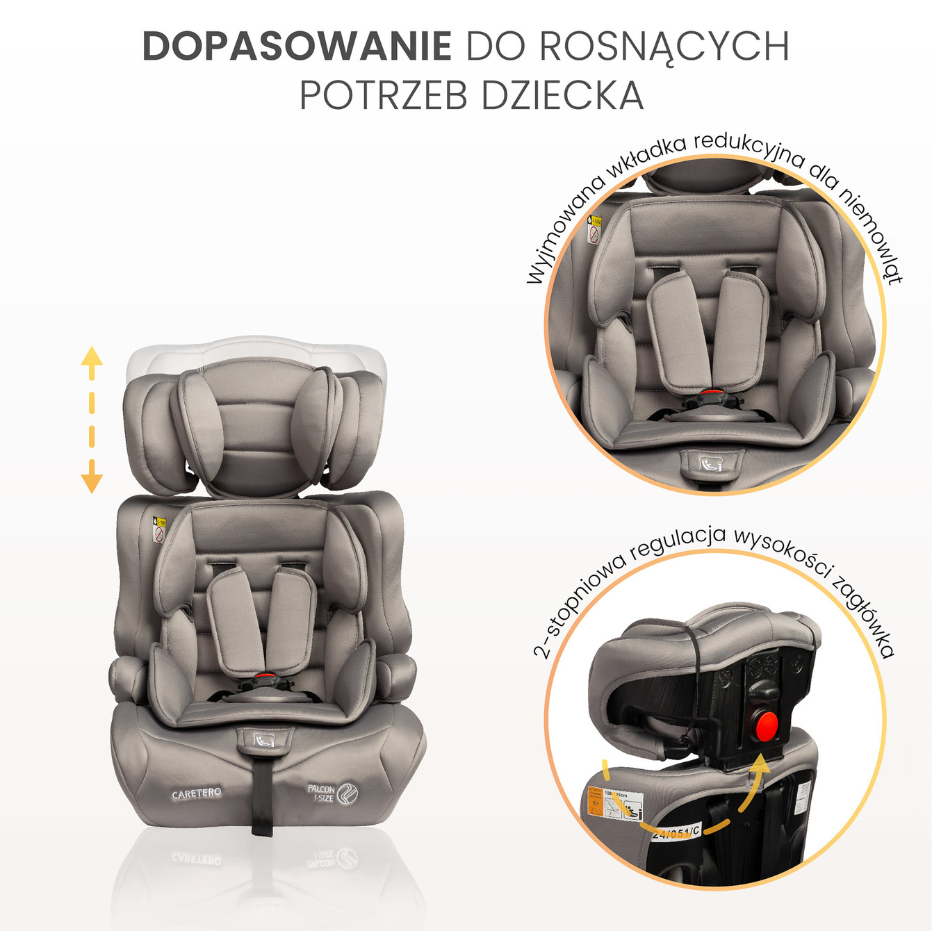 Model Falcon spĺňa normu R129/i-Size, čím zaručuje najvyššiu úroveň bezpečnosti. Vďaka upevneniu pomocou bezpečnostného pásu vozidla sa dá jednoducho prispôsobiť rôznym typom áut.