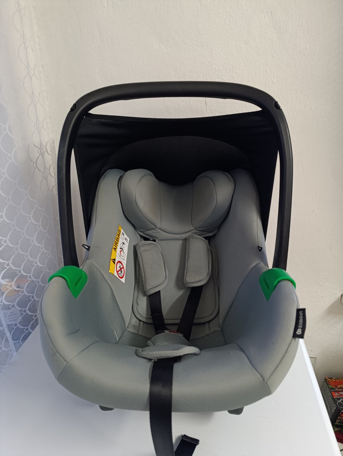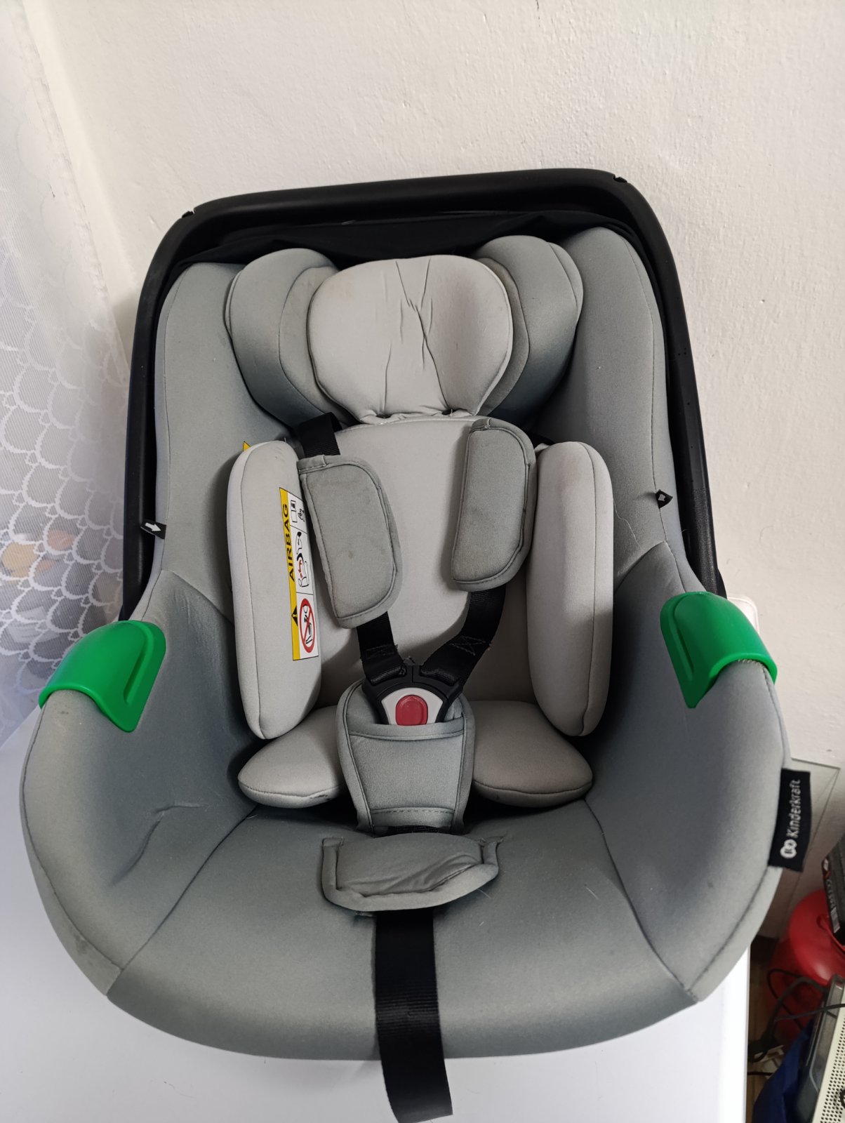 Bežné známky používania. Používané cca 11 mesiacov, ale len občas , nechodili sme často autom. Nemá žiadne záväzné poškodenia. Dôvod predaja - prešli sme už na autosedačku. Je vyberatelna novorodenecka vložka .