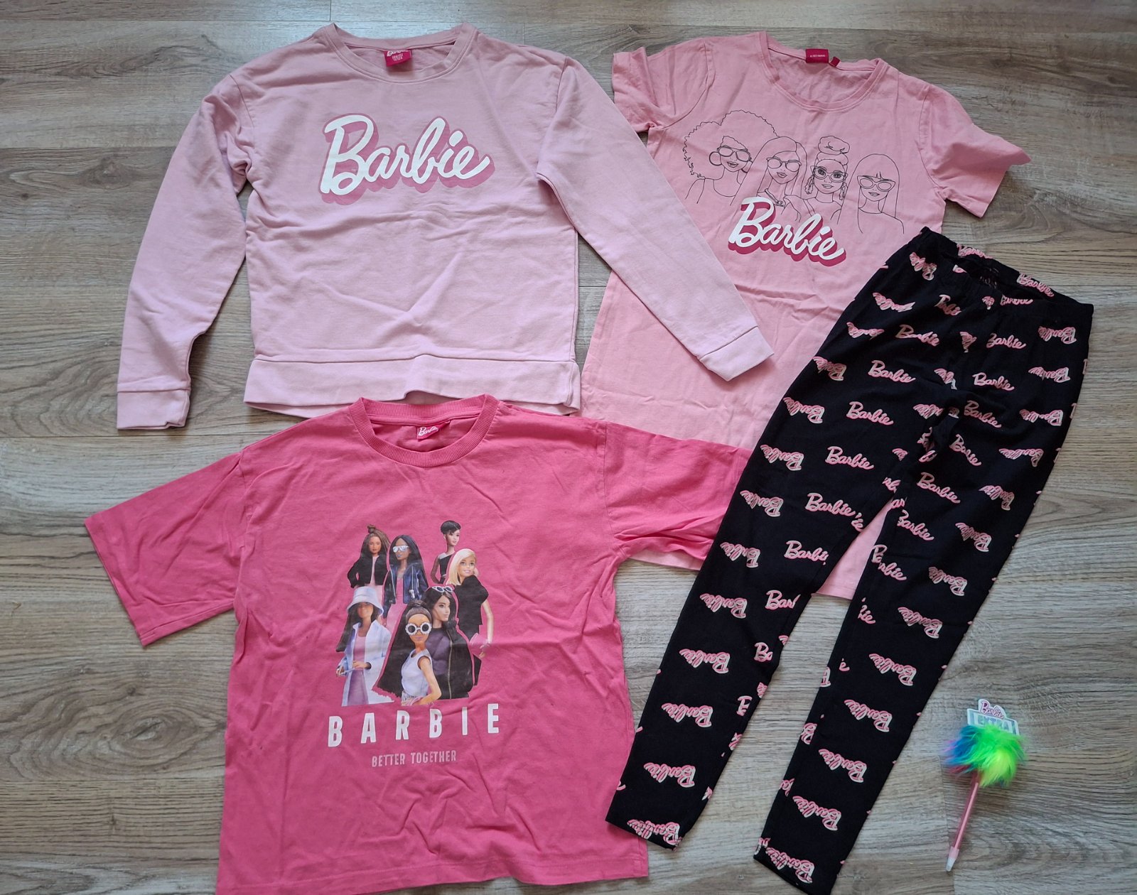 Všetko veľkosť 146/152, väčšina nové, nenosené, nočná košeľa ružová Barbie nová, cena samostatne 4 eur, Barbie mikina 146/152, ako nová, oblečená iba trikrát, bez akejkoľvek chybičky, miery: šírka 42cm, dĺžka vpredu 53cm, vzadu 57cm, rukáv od ramena 50cm, cena 4 eur, tmavšie tričko ružové značka reserved, iba oprané, nenosené, v 100 % stave, cena 3 eur, legínky iba oprané, štítok odstrihnutý, veľkosť 152, Kik, cena 3 eur. Cena za všetko spolu 10 eur plus zdarma pridám pero Barbie Extra.