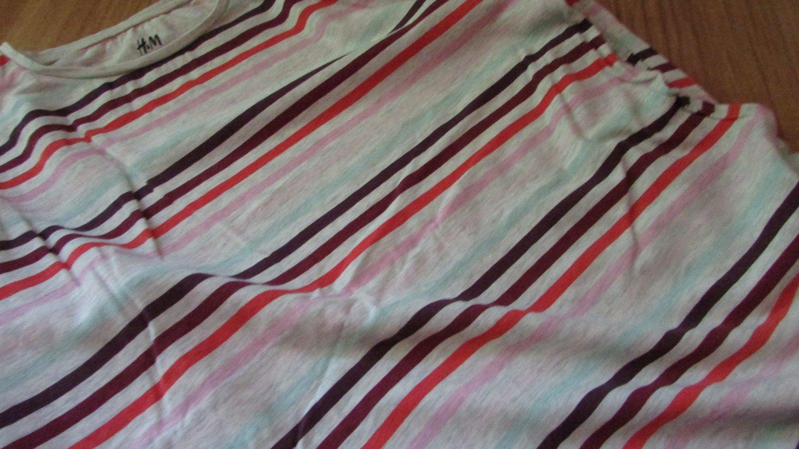 Tričko s pásikmi, HM, veľkosť 8-10 r. Veľmi dobrý nosený stav, bavlna s elastanom. Hodia sa farebne k rifliam. Dĺžka: 52,5 cm, rukáv od krku: 59 cm Cena: 3 Eur.