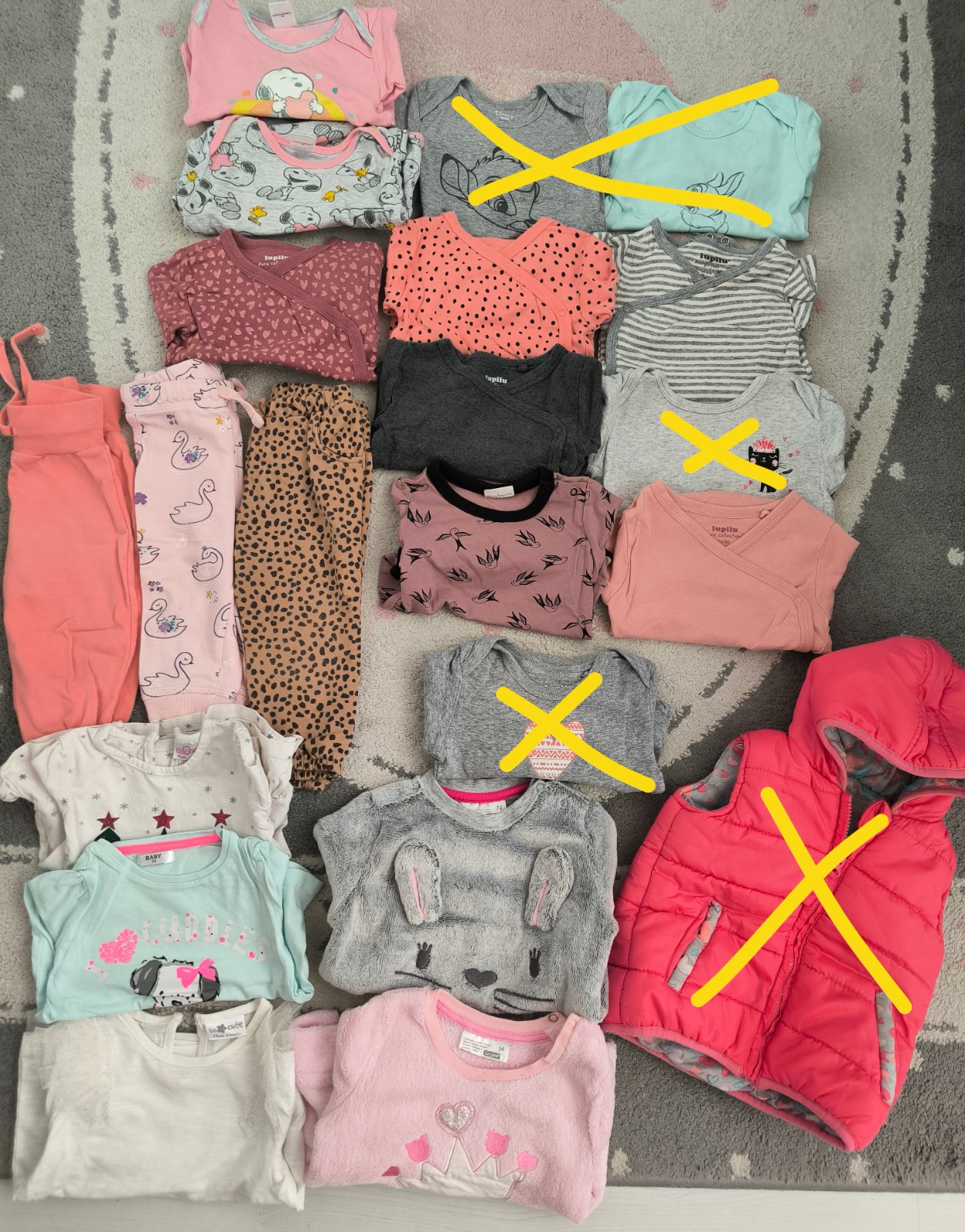 Predám mix oblečenia 80/86 veľkosť. Obsahuje : 2* tričká krátky rukáv,, 1*body dlhý rukáv, 1*klobucik, 1* tepláky
