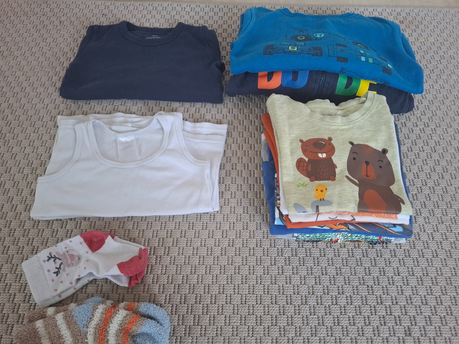Ponúkam na predaj detské oblečenie (veľ. cca. 3roky) vo veľmi dobrom stave. Cena uvedená za všetko spolu (2x mikiny, 1x tričko s dlhým rukávom, 7x tričiek s krátkym rukávom, 2x tielka, 1x obyčajné ponožky, 1x hrubé ponožky). Posielam po prijatí úhrady. Cena+poštovné. Pozrite si moje ďalšie inzeráty. Dohoda možná pri odbere viac vecí.