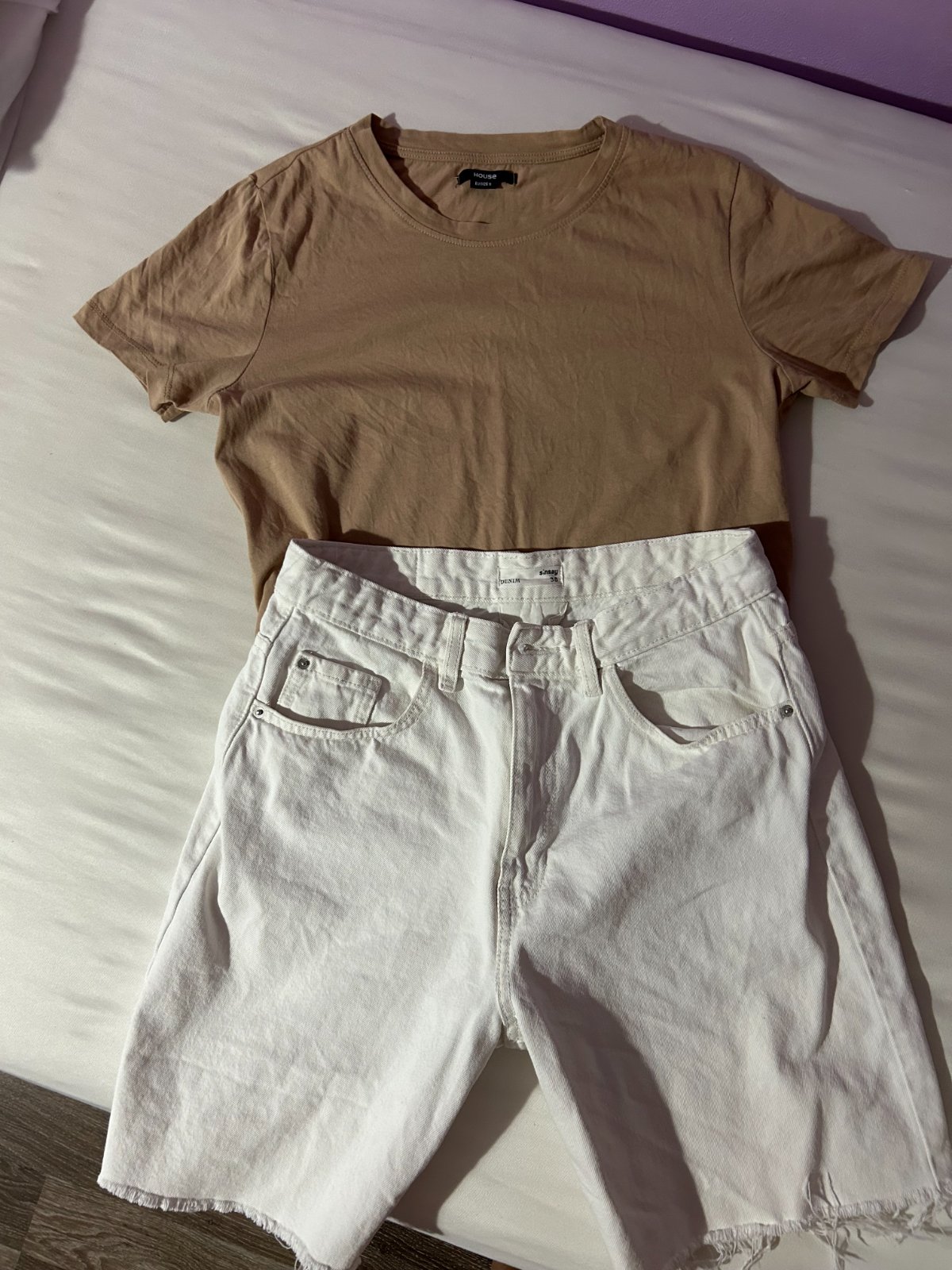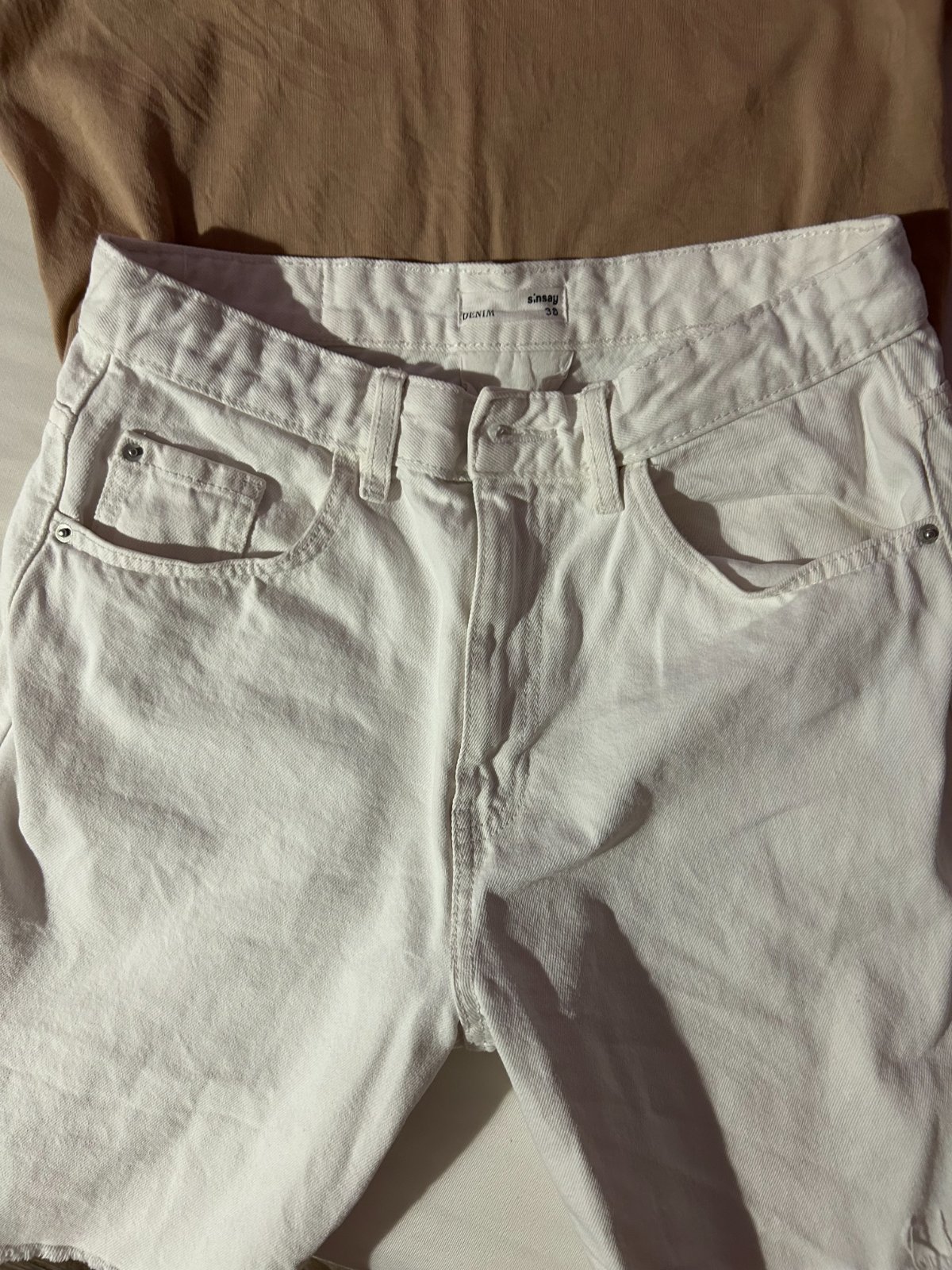 Malo nosene kratasy, neznicene, ziadne flaky, poskodenia velk.38 zn.Sinsay. Mierne siroke s vyssim pasom. Pridavam k tomu aj tricko vel.S. z Hause. Pekne to spolu ladi. Ja sa uz bohuzial nezmestim do kratasov tak predavam. V pripade zaujmu rada premeriam. cena + postovne alebo osobny odber KE.