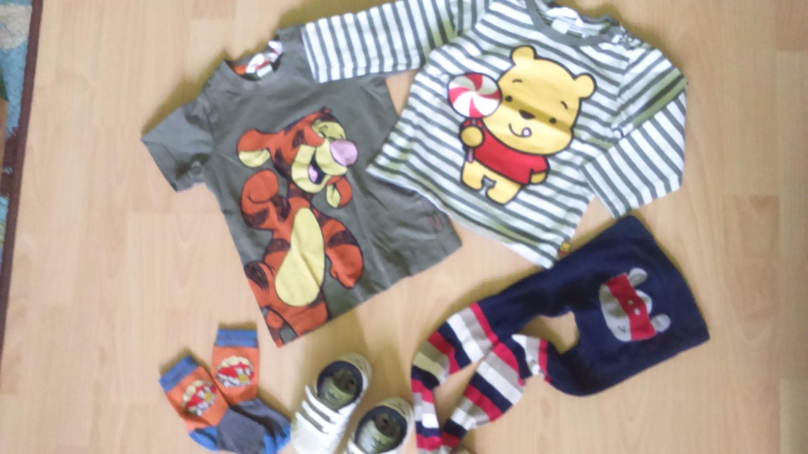 Pančuchy 86/92, len žmolky. Tričko H&M, Pooh, dlhý rukáv, výborný stav, veľ. 86. Tričko H&M, krátky rukáv, výborný stav, veľ. 86. Ponožky angry birds. Cena už bez tenisiek, tie už nemám./