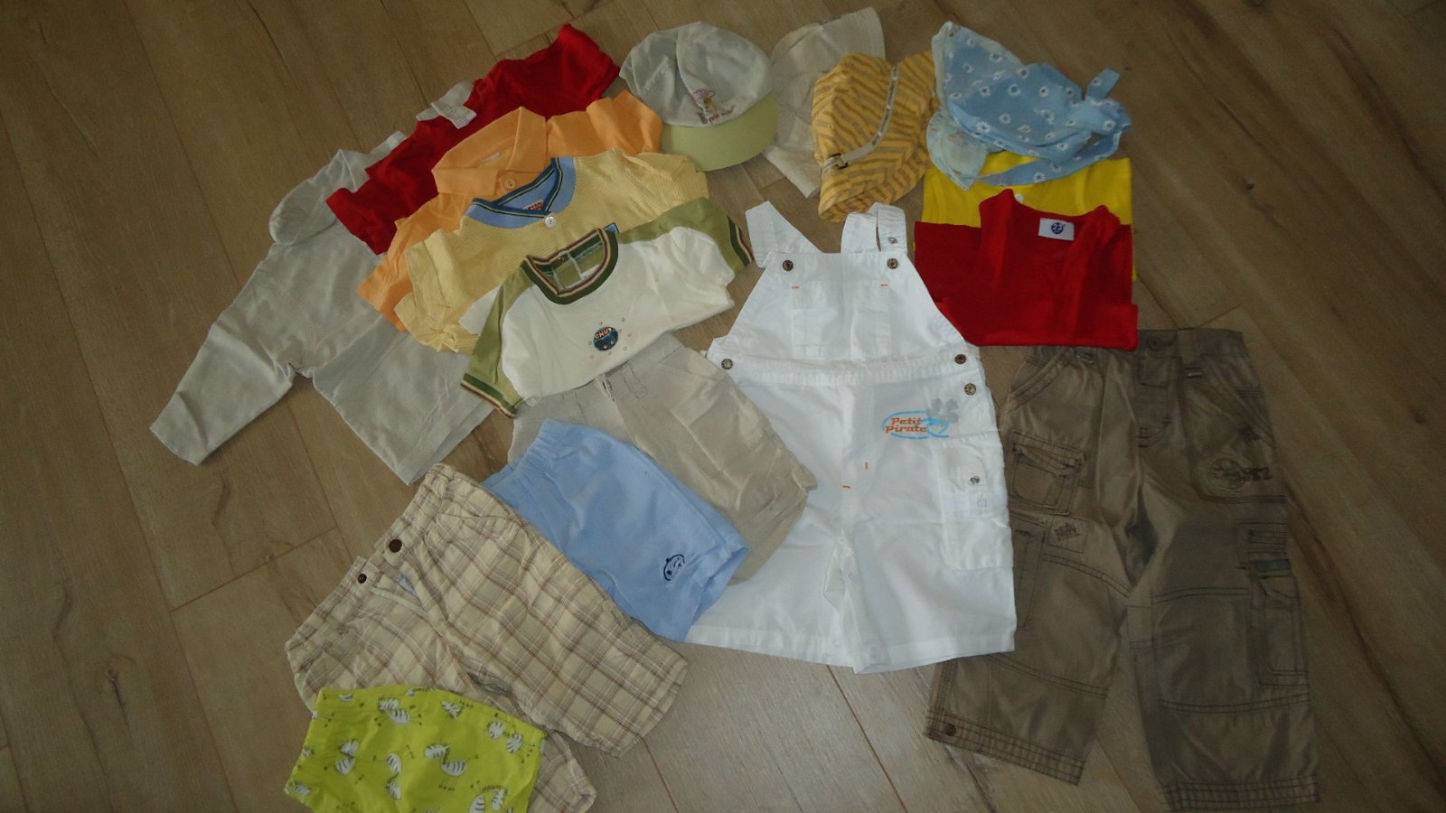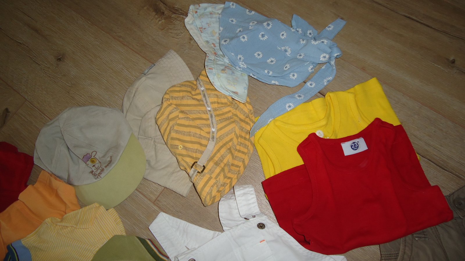 4. balik- letné veci- 5 x čiapka, šiltovka, 2 tielka, 5x tričko, 6 x nohavice, vel 68-86, cena, cena, cena 12e