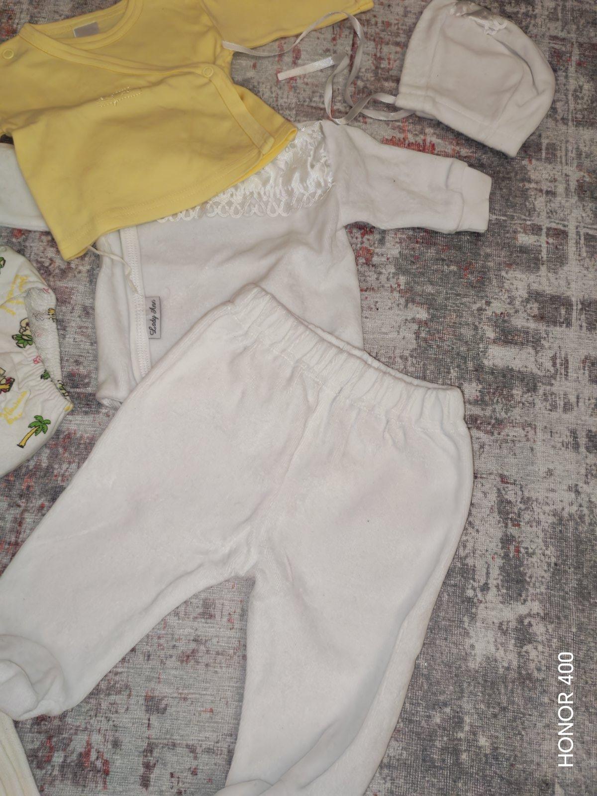 Súpravička aj na krst,3 kusy . Zavinovacia košieľka. Zajko benetton. Nohavičky. 2x plienočka