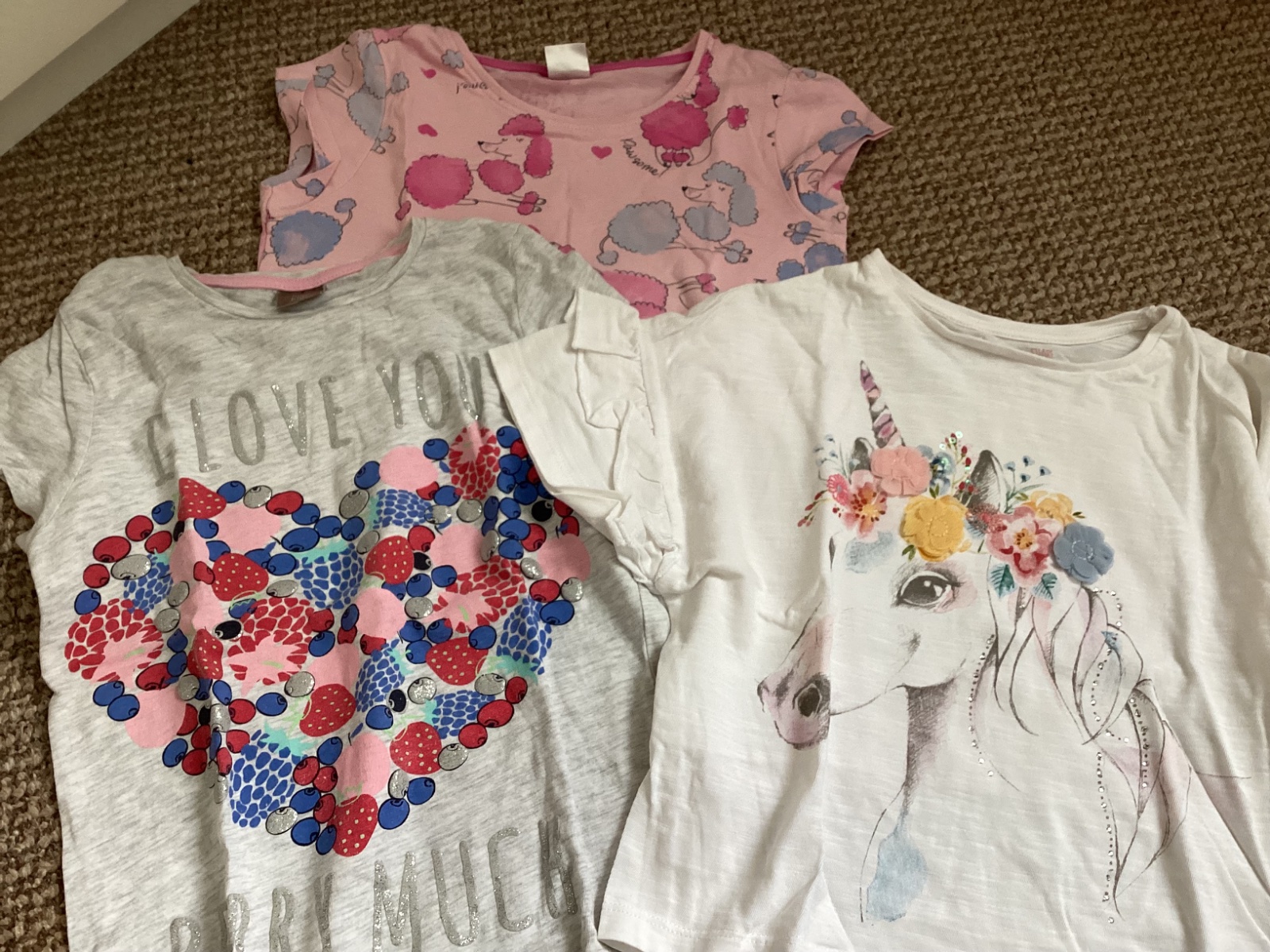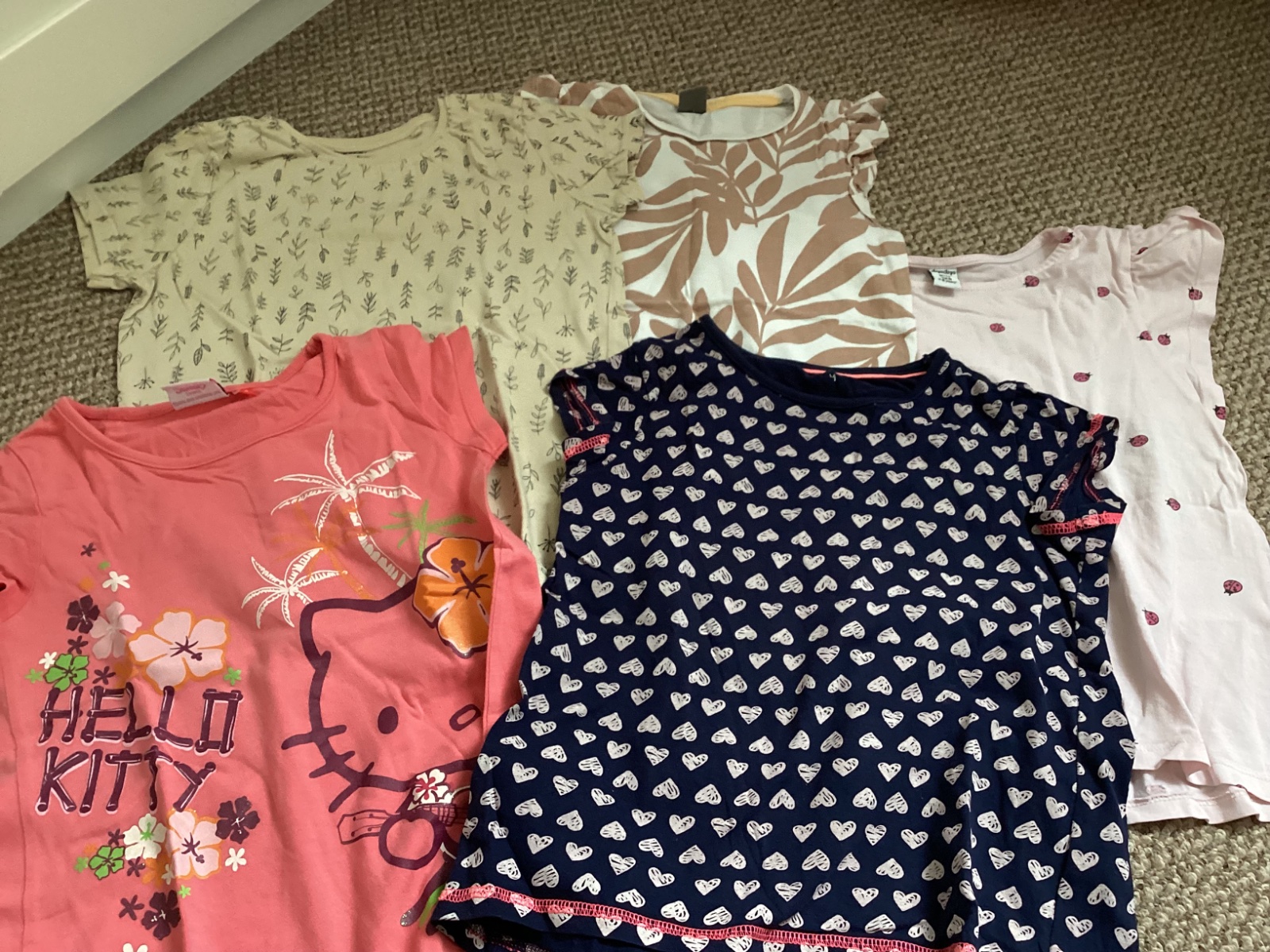 Väčšinou 128-134, v peknom nosenom stave, bez fľakov a dier, možnost predaja aj samostatne, ak potrebujete rozmery kľudne napíšte.