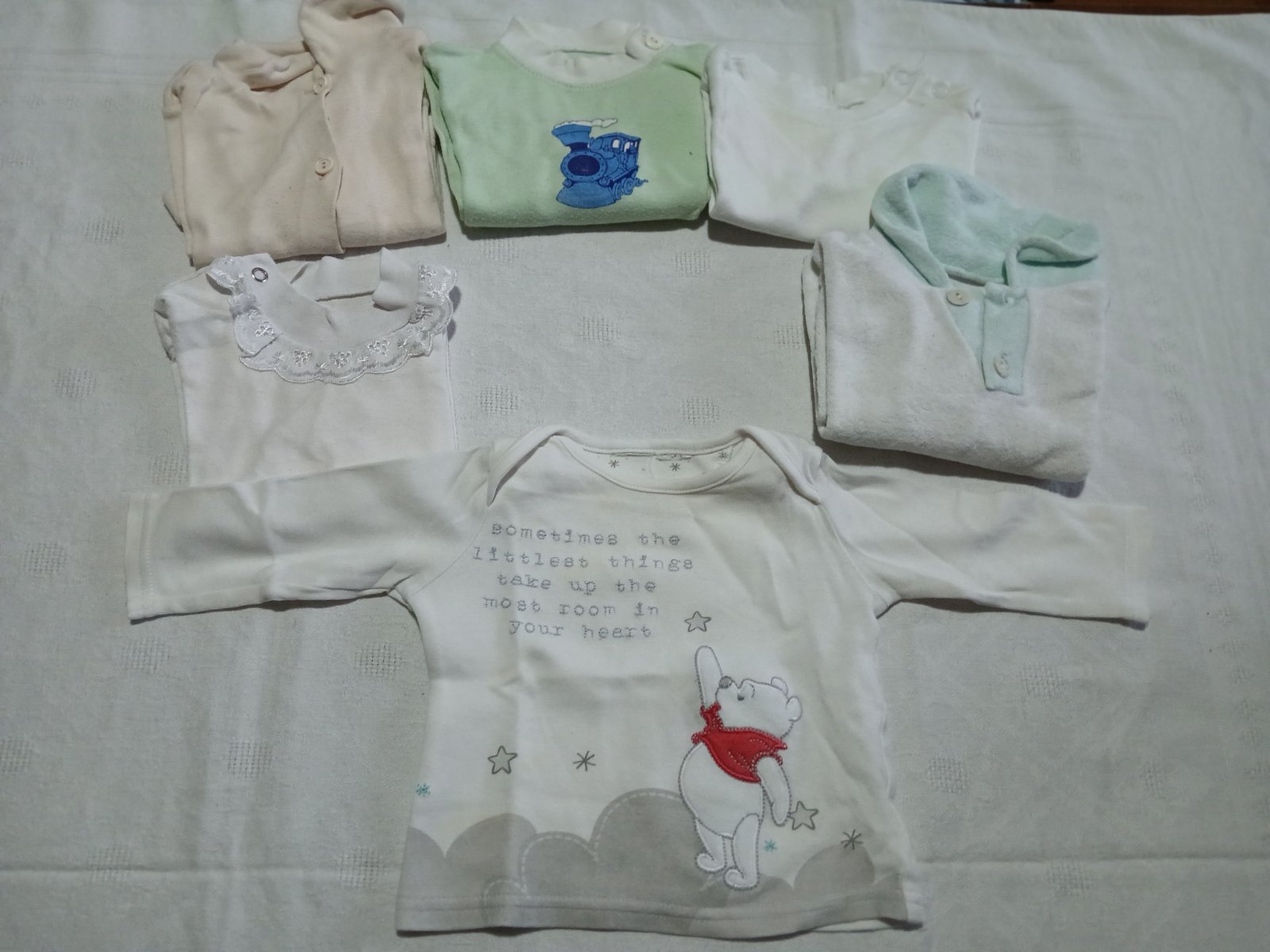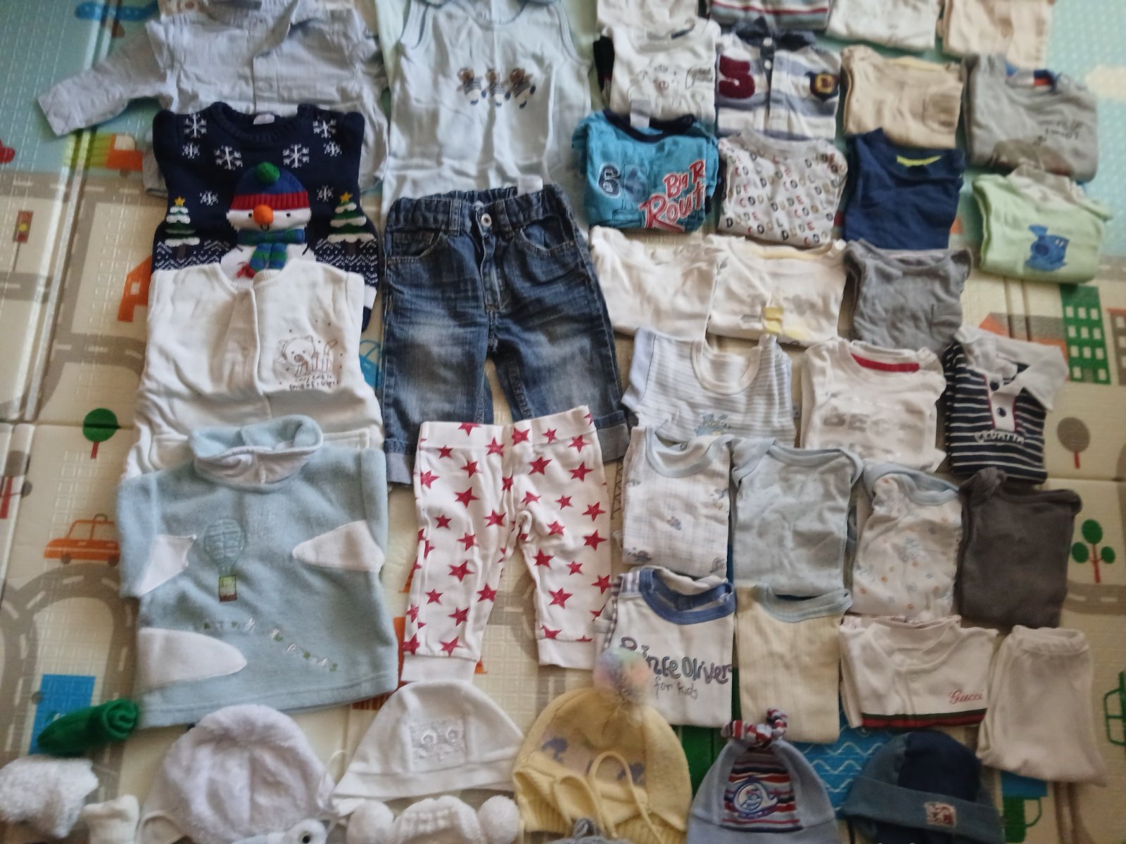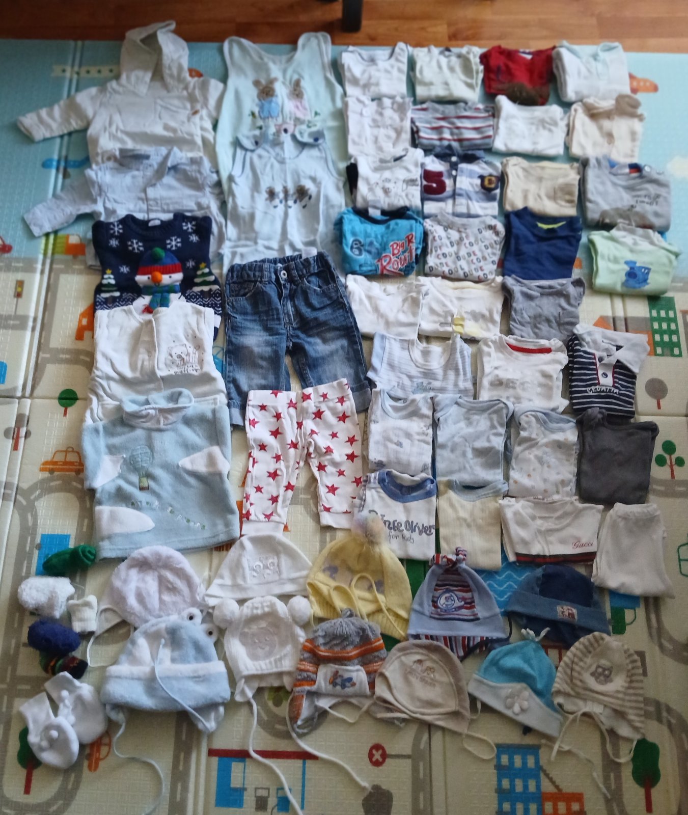 Balik vo veľkosti 68 teda 3-6m. V balíku sa nachádza nohavice,tričká s dlhym rukavom , body s dlhým rukavom,polodupačky,mikiny, sveter, bunda ,čiapky a rukavičky.