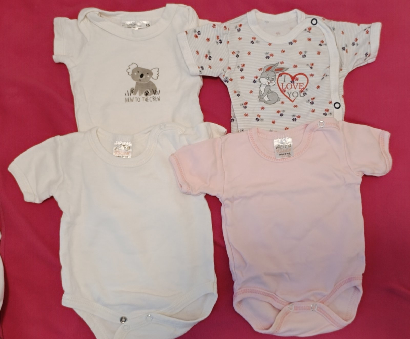 Balíček oblečenia označené v. 62, ale je to skôr 56. Obsahuje dupačky objednané z eshopu - vynikajúci stav; body s dlhým rukávom zn. Disney - vyblednuté farby a žmolky, inak bez závad. Pribaľujem k...