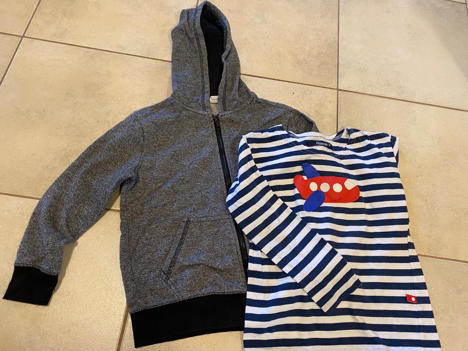 Mix oblečenia, veľkosť 110/116 2x mikina, obliekanie cez hlavu (jedna s kapucňou, druhá bez kapucne) 1x rifle 6x tričko s dlhým rukávom (jedno tričko s golierom)