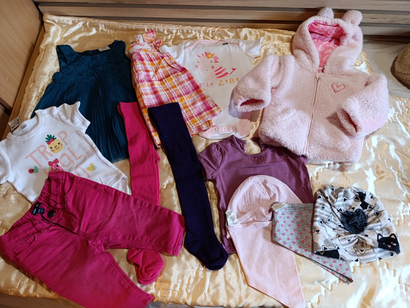 Mix oblecenia pre dievcatko cca vel.74-80. 2x overal pyzamko, 2x podsite teple nohavice ( makkucke riflicky a bledoruzove menzestracky), body s dlhym rukavom, tricka s dlhym rukavom, ruzove menzes...