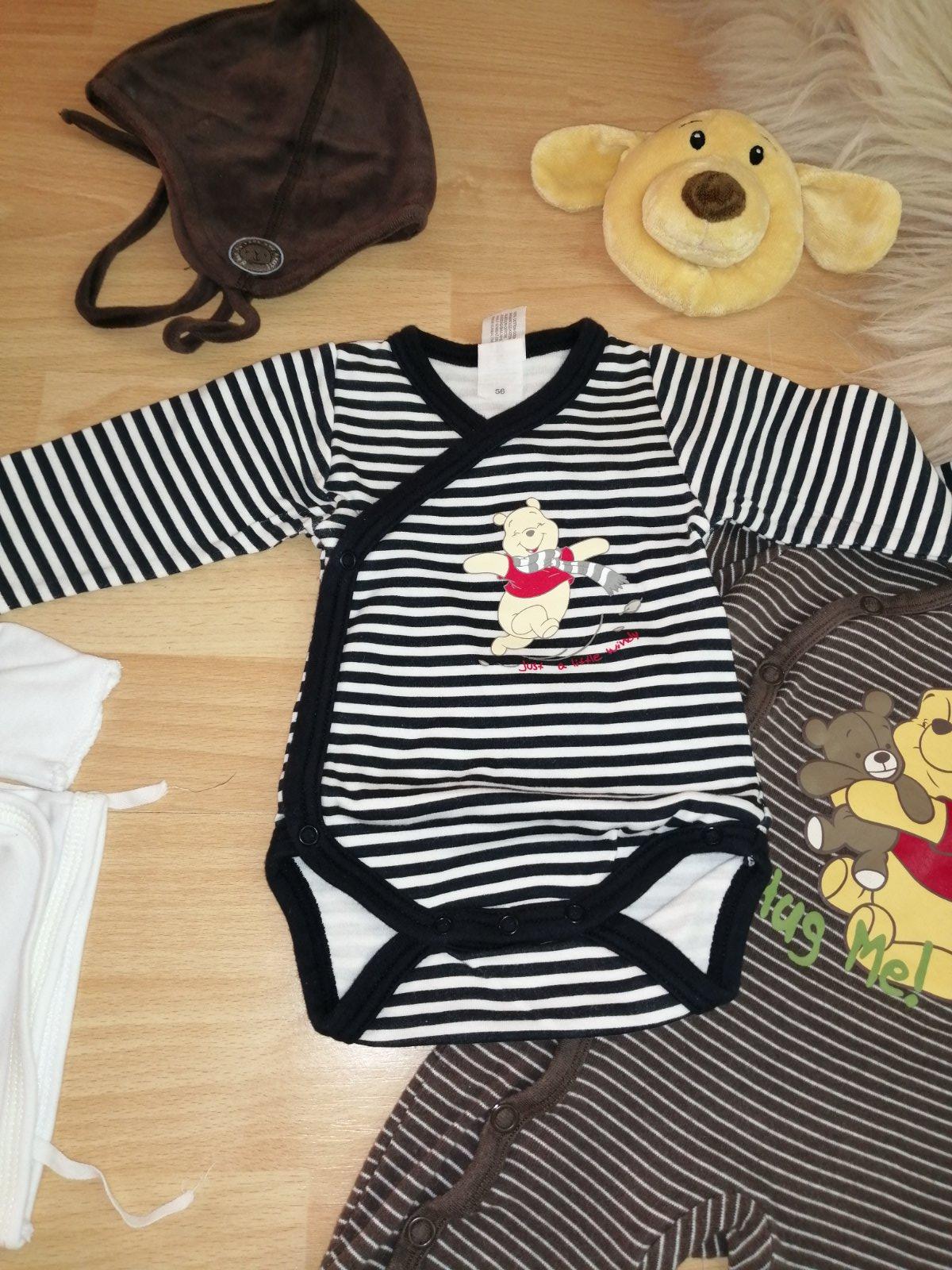 Košieľka 0m, výborný stav, slovenská výroba, zavinovacia. Flisová bundička H&M, 0-1m, výborný stav. Body c&a, veľ 56, ako nové, zavinovacie. Zavinovacií overalík H&M, výborný stav, veľ 56. Hrkálka Pooh, hebulinká, ako nová. Čiapočka i.j.fasion, slovenská výroba, 0-6m, výborný stav. Čiapočka H&M, Sametková, ako nová, 0-1m. Spolu 7 kusov.