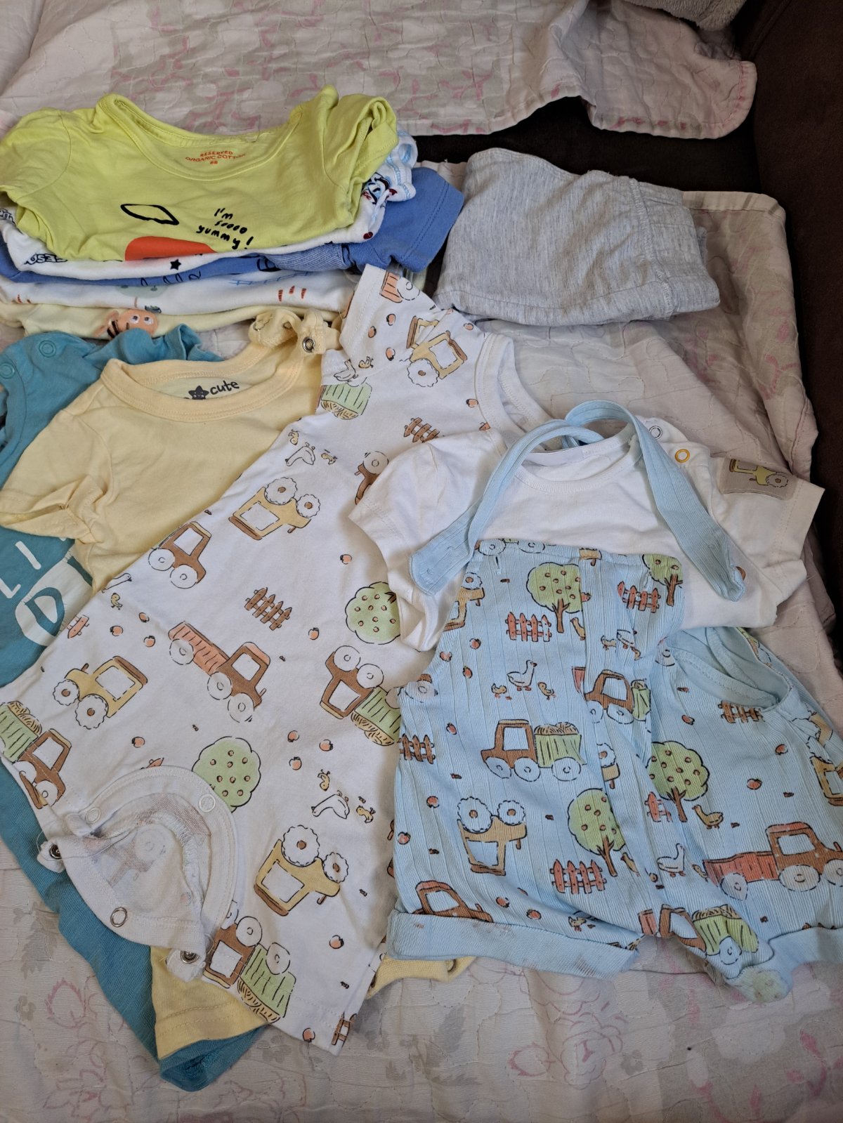 Dupackove kratasy 3ks, 1ks kratasy na traky s bodyckom, 5ks body kratky rukav. Par krat oblecene.