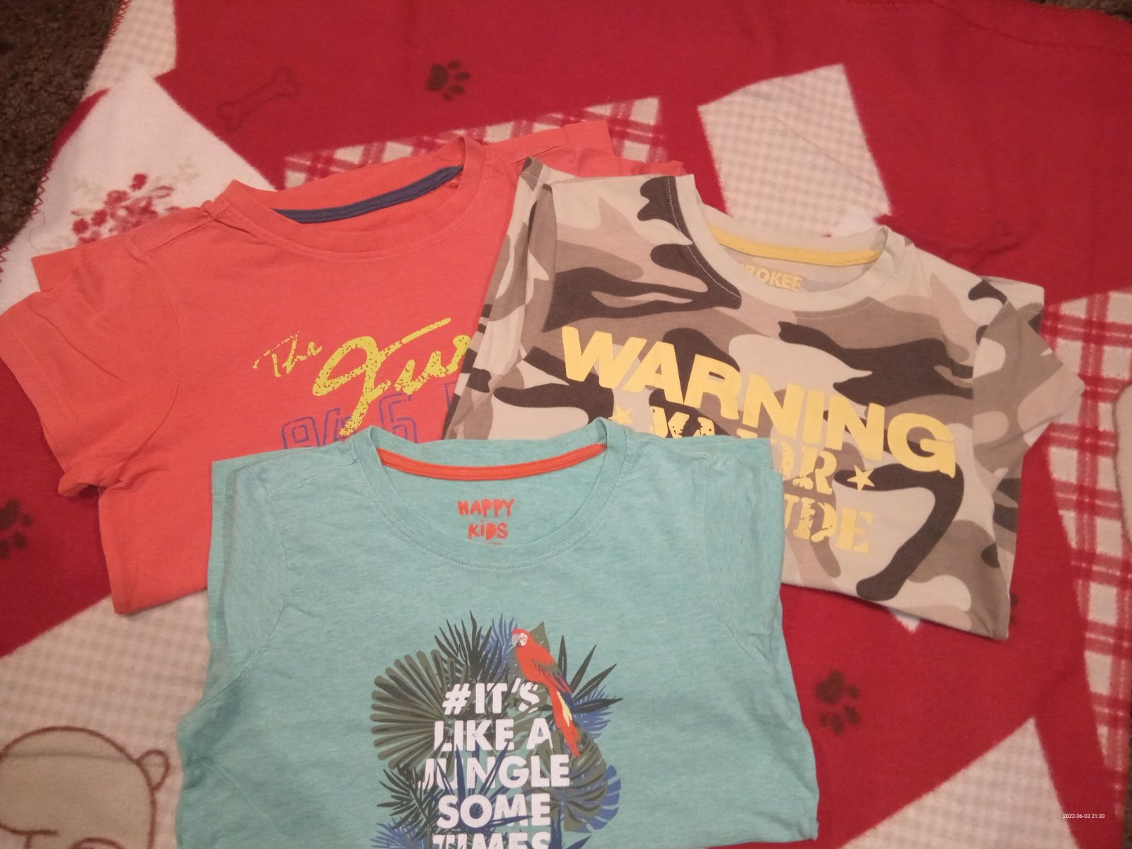 Oranžové značka Loap, maskáčové Zn. Cherokee, zelené Tchibo.