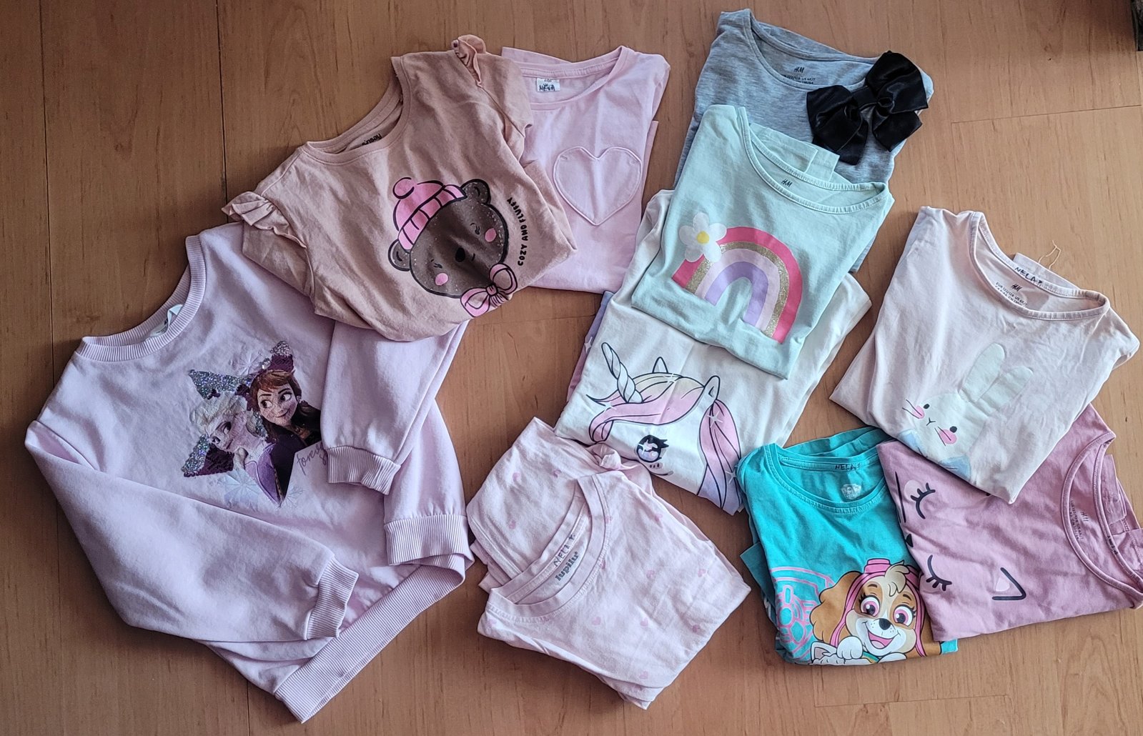 Mikina asi 4x oblečená. Ostatné málo nosené. Pozostáva z: 1x mikina, 8x tričko s dlhým rukávom, 1x pyžamo. Oblečenie prevažne značka H&M.