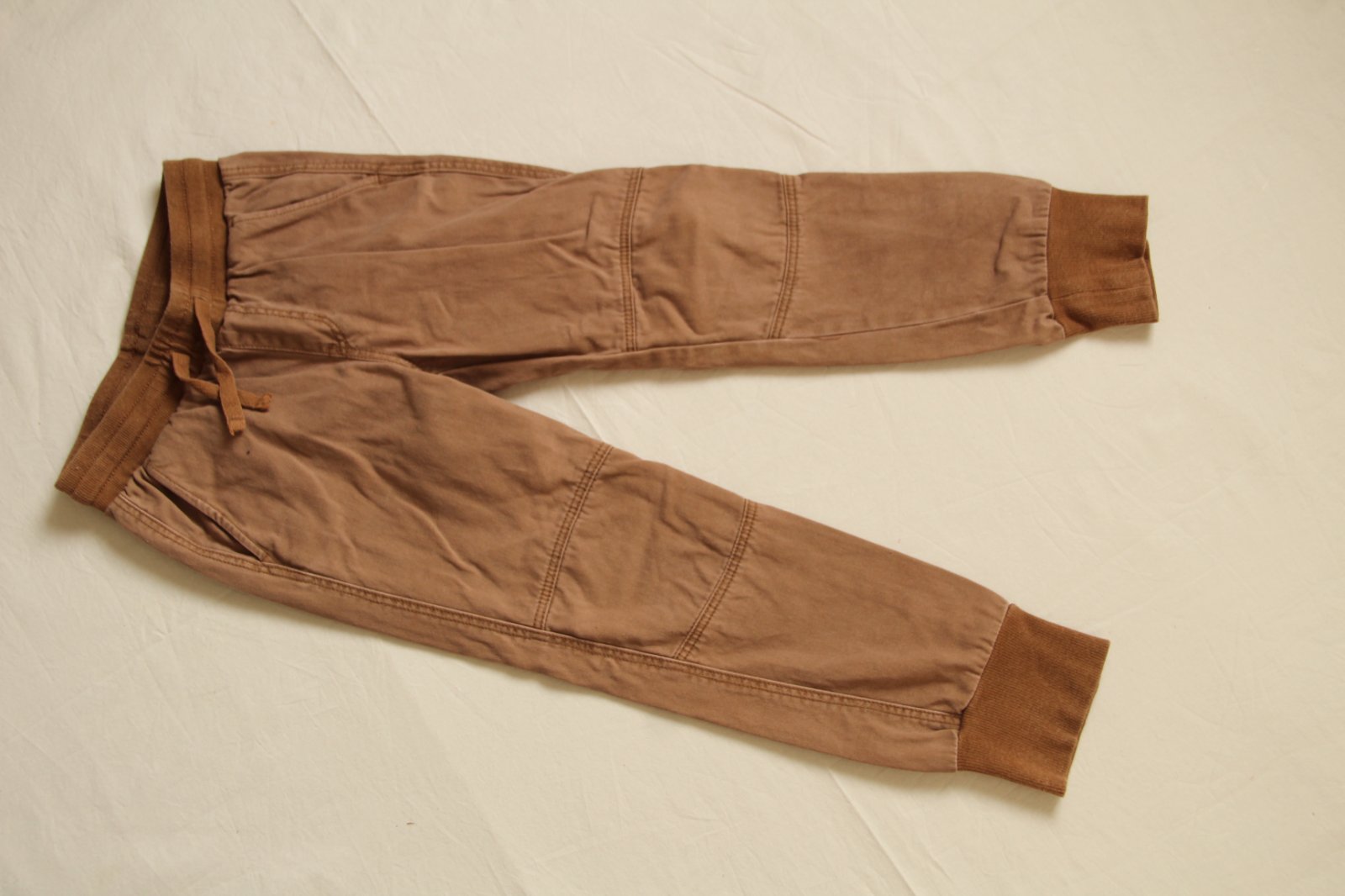 Bledohnedé nohavice, prírodné, pohodlné, majú pružný pás, sú v super stave. Ideálne na dobrodružstvá medzi deťmi.
