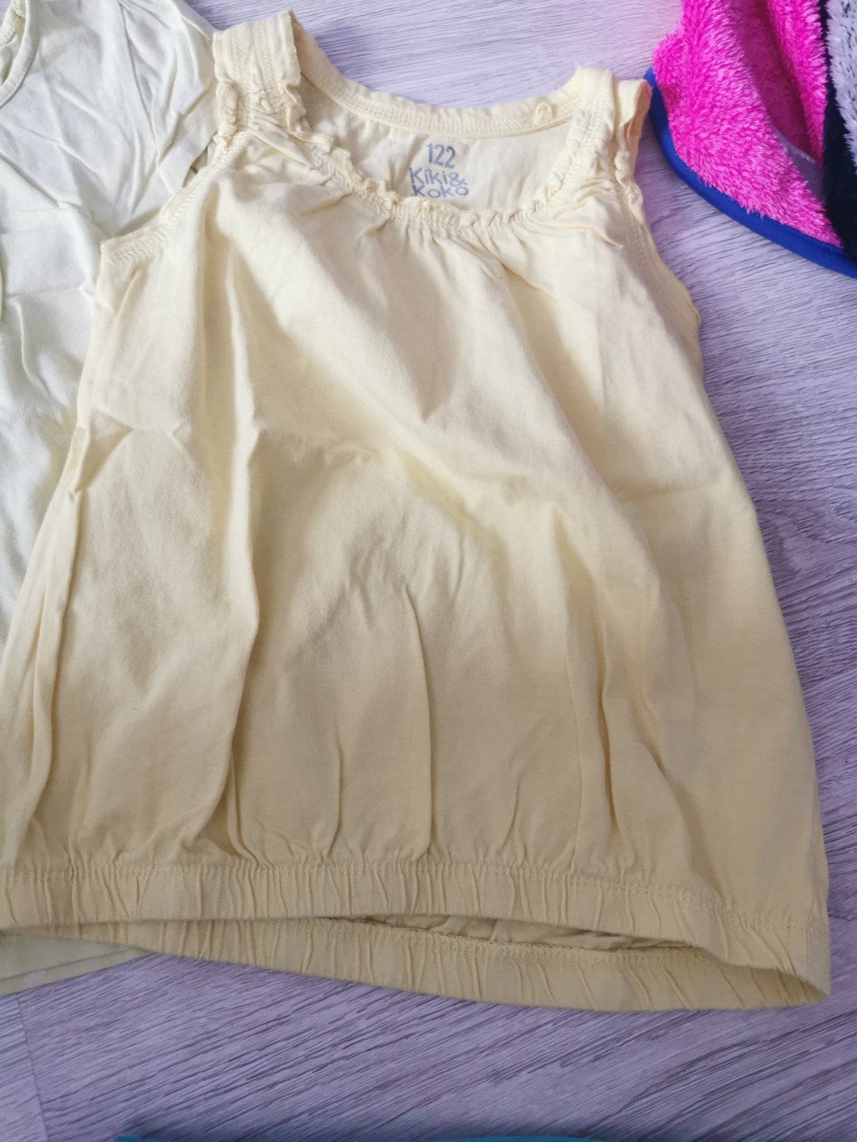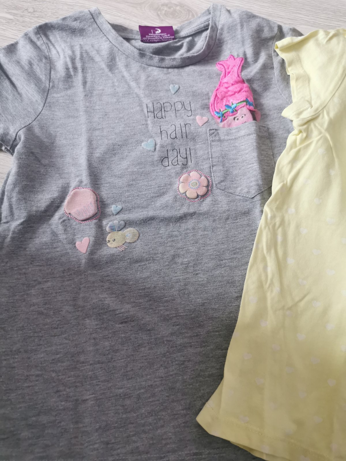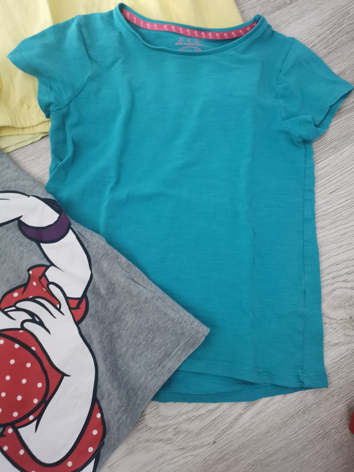 Tričká mix, veľkosť 6-7rokov. Tričko Trolovia zn. George, pri obrázku má menší fliačik a obrázky vyblednuté, inak bez poškodenia. Svetlo žlté tričko so srdiečkami veľkosť 122/128, značka H&M, top stav. Žlté tričko veľkosť 6-7rokov, značka Kiki&Koko, top stav. Tyrkysové tričko, veľkosť 6-7rokov, značka F&F, top stav. Sivé tričko s Daisy, aplikácia mierne popraskaná na pár miestach, značka Disney, veľkosť 6-7rokov. Cena spolu.V