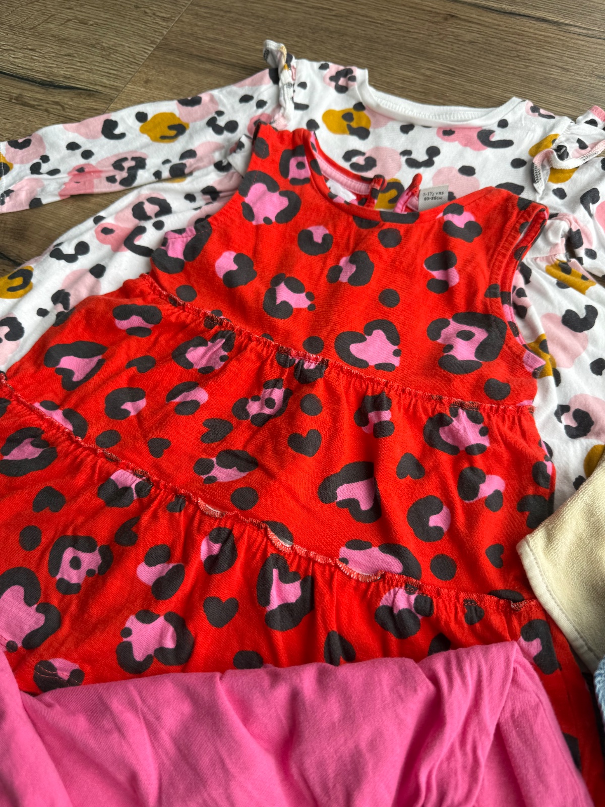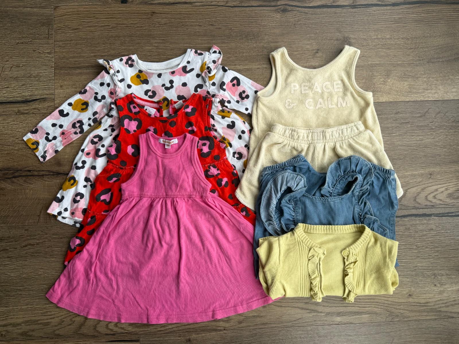 Balik oblecenia, bez poskodeni, v peknom nosenom stave. Saty H&M a kiki&koko, tricka lupilu, F&F, sinsay