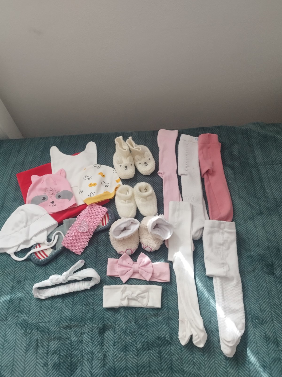 Mix oblecenia,pekne kusky,neposkodene.Velkost 68,74 plus capacky par krat obute.