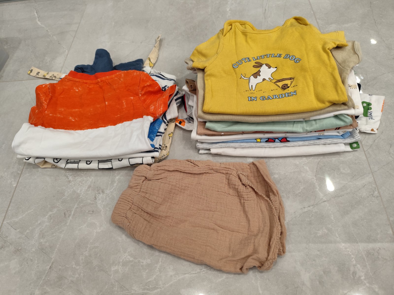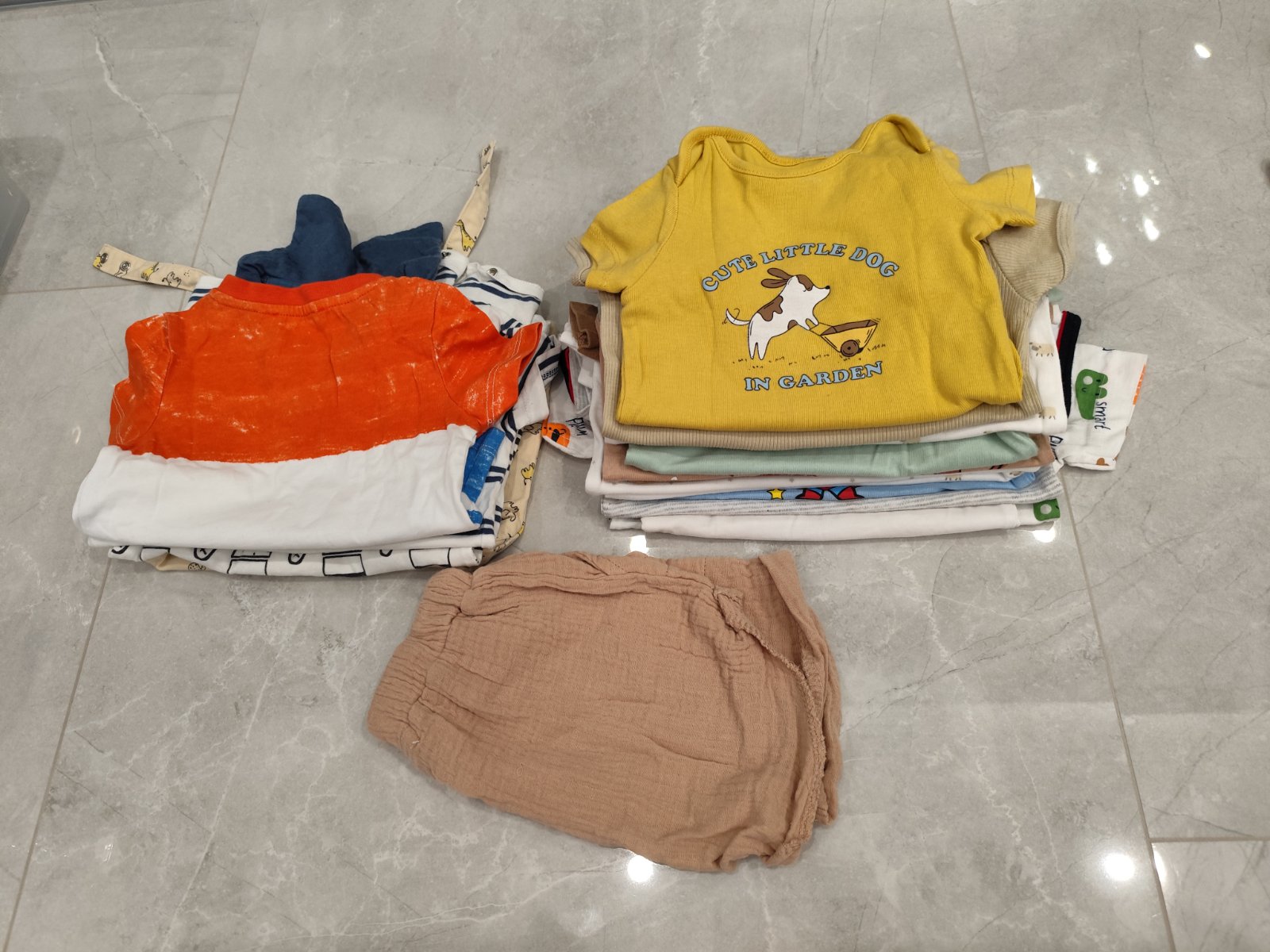 Veľkosť oblečenia je 74cm. Balík obsahuje: 2x kratasy 2x súprava krátke tričko a teplaky 1x súprava kratasy a tricko 2x body s krátkym rukavom Bez poškodení, cena 10€+pošta