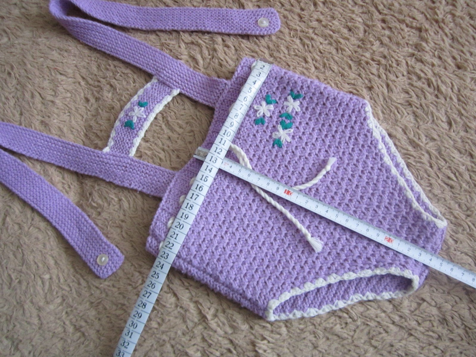 veľ. odhadom cca 68/74 natiahne sa ešte. Fialové opaľovačky s možnosťou zatiahnutia šnúrky v pase, s krásnou výšivkou.