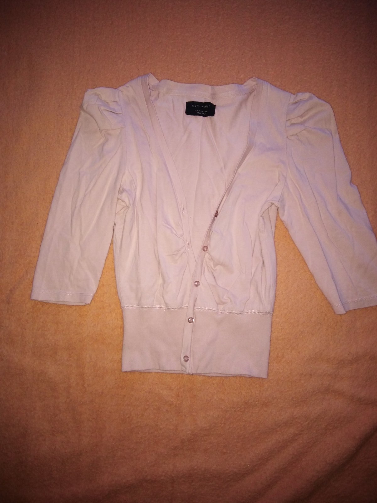 Svetlomodré slim rifle, veľkosť 36. Béžové niečo ako bolerko, alebo svetríček s krátkym rukávom, veľkosť M. Priložím aj mikinu, veľkosť píšu S, ale je to skôr M (možno aj nosením rozťahaná) Červená vesta je už predaná.