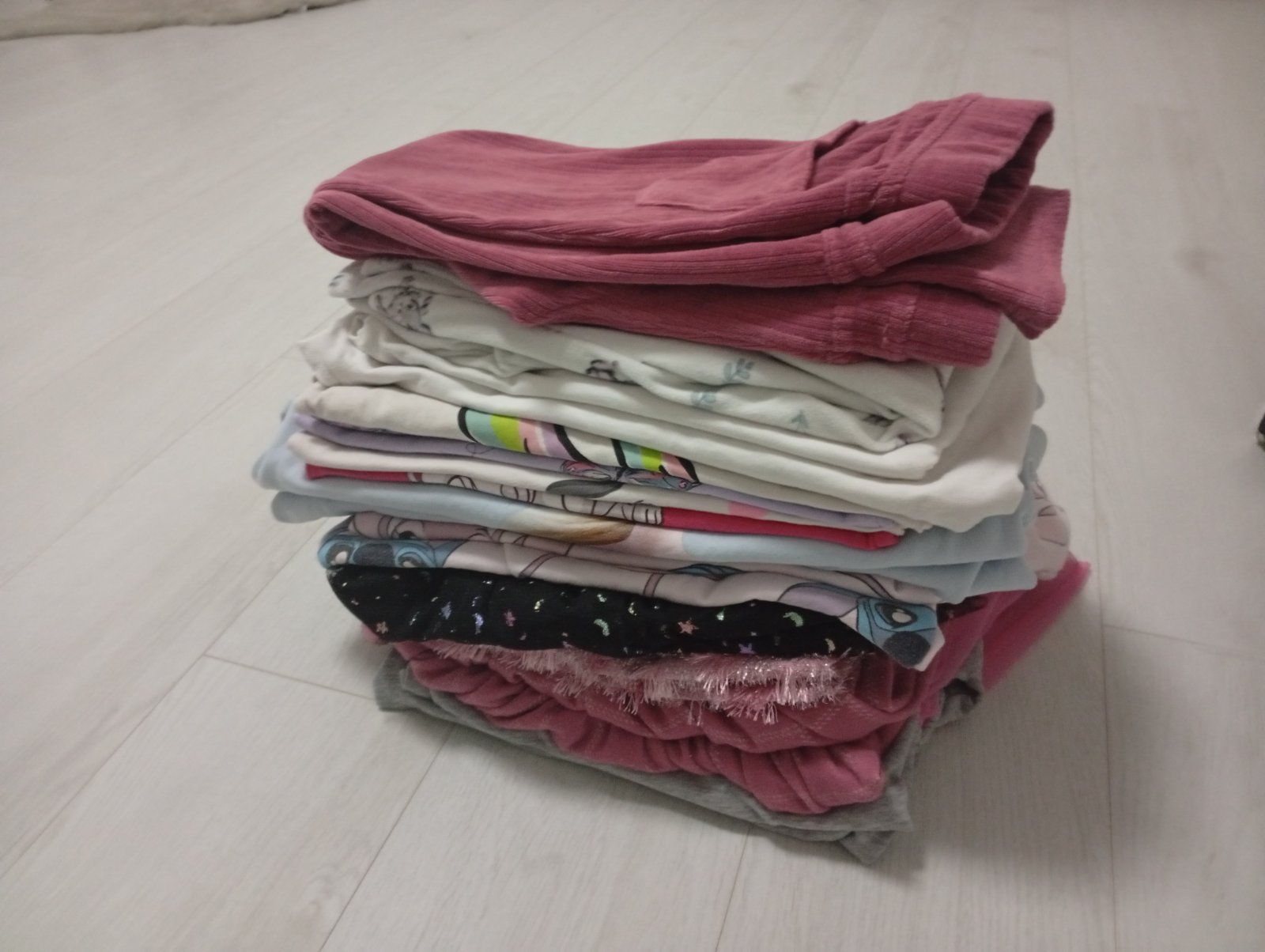 3x sveter,3x tricko dlhy rukáv,2x tricko krátky rukáv,1x čierne rifle,1x velmi hrubé legíny,1x sukna,2x saty dlhy rukáv,5x letné saty,3x kraťasy