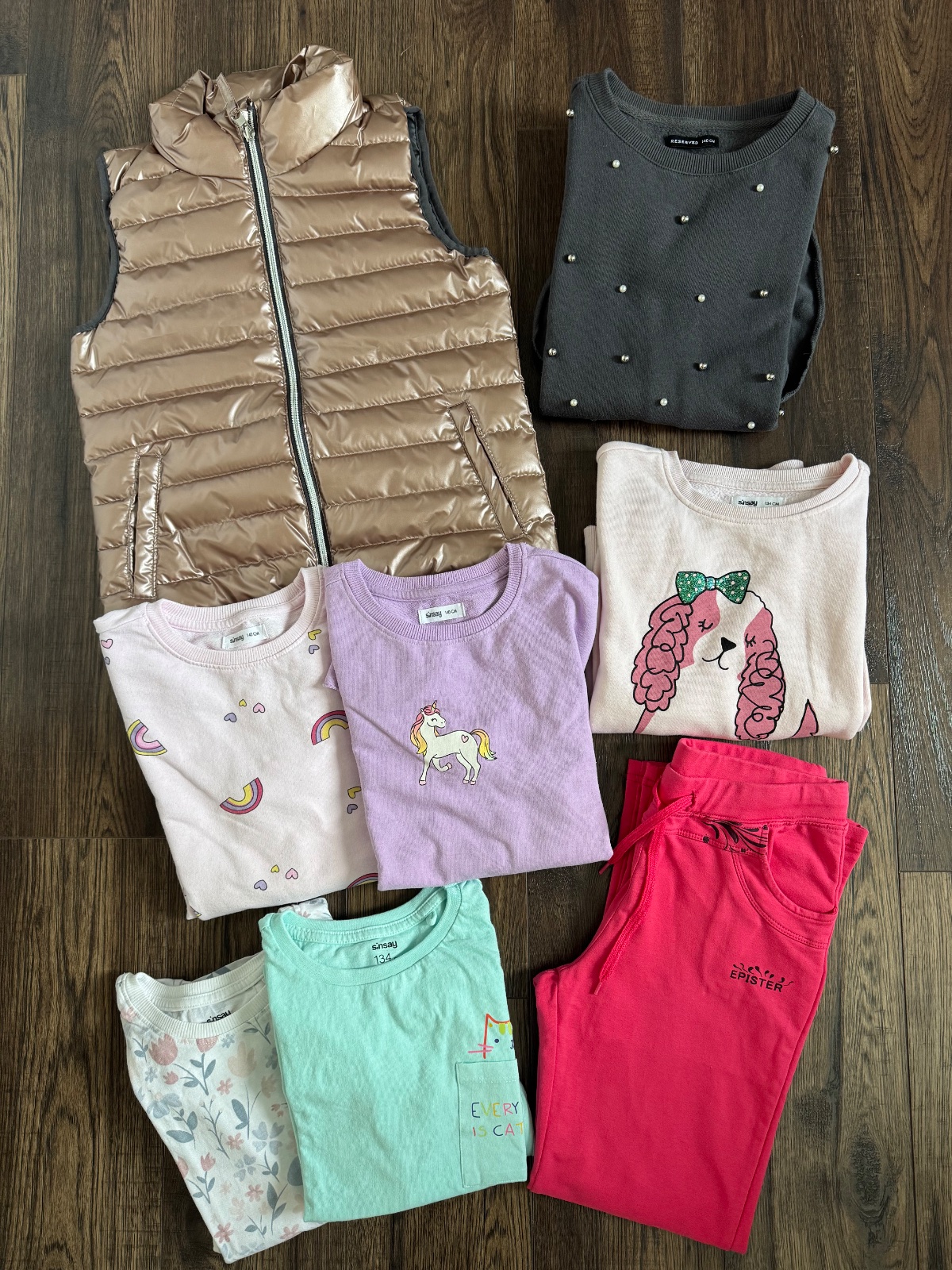 Balík obsahuje : prechodnú vestu, teplejšie šaty, tepláky , 3x mikina, 2x pyžamko ( vrch krátky rukáv, spodok dlhé nohavice).