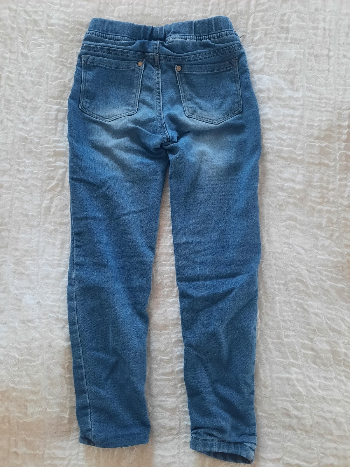 V dobrom stave, bez poškodení. Rifle značka pepco, zateplené, mäkké. Veľkosť 134 cm. Pás 26cm, dĺžka celková 71 cm.