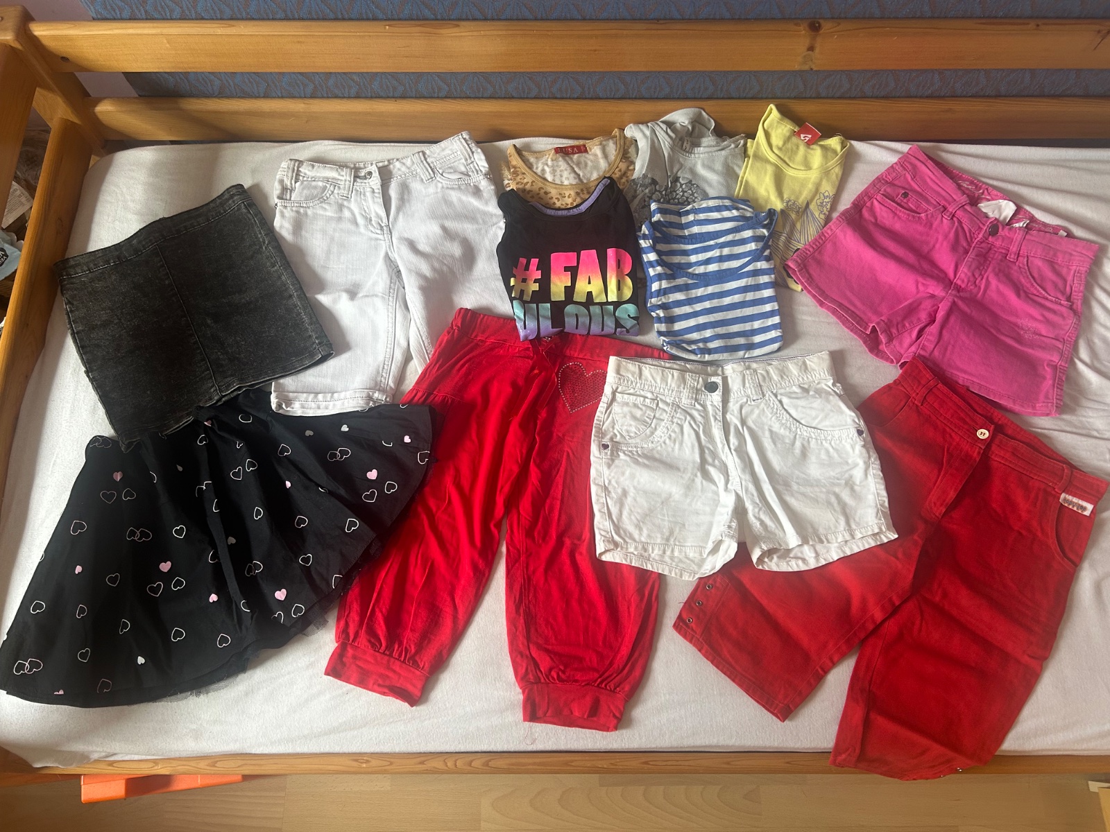 Letný balík značkových tričiek, tielok, sukní, kraťasov. Veľkosť 134/140.