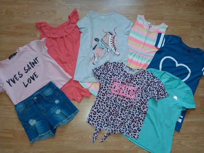 Predám balík oblečenia veľkostne 134/140 /146,len spolu balík je vhodný na donosenie nie do školy skôr na dvor, 1x sveter predĺžený, 6x tričká s krátkym rukávom , 1x legíny , 1x mikina,cena za všet...
